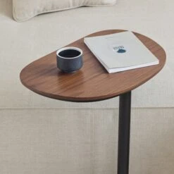 Almond Side Table was born to provide flexible versatility of both end table and side table. This easily carried and moved C-shaped piece allows you to slide it under the couch or chair for an easy-to-use laptop or tablet table.