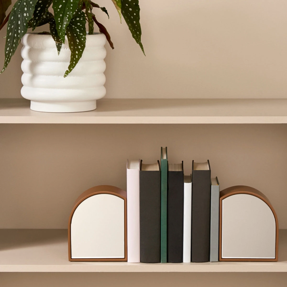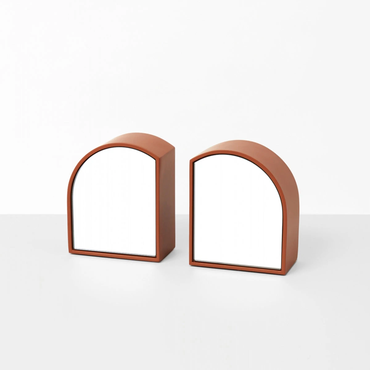 Exploring geometry and reflection, the Archie Bookends are a playful way to add visual interest to a shelf or sideboard. Each decorative bookend is double-sided, with a regular mirrored side and a tinted mirror side, allowing for multiple looks and making a feature of your favourite reads.