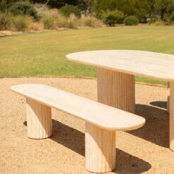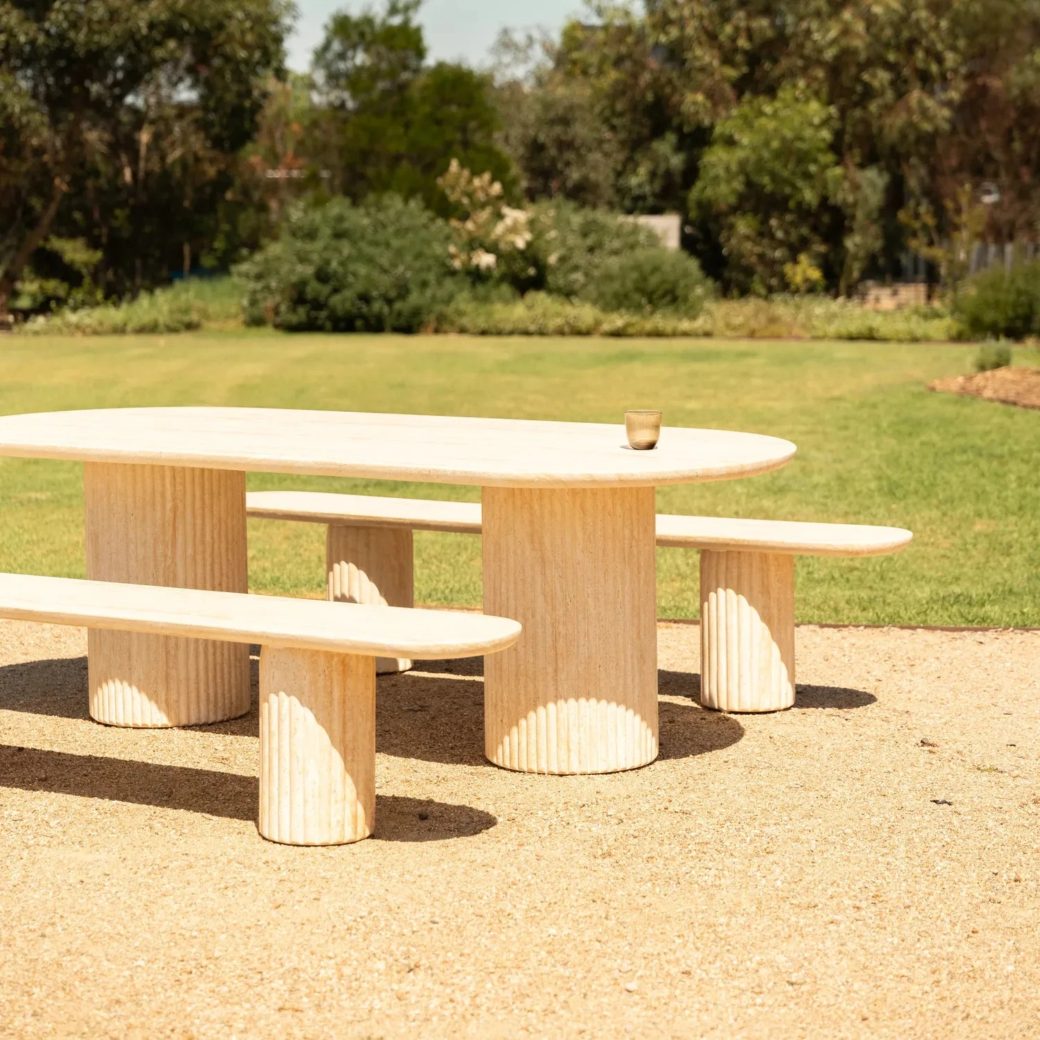 2 x Arlie Outdoor Dining Bench 220cm – Travertine Finish