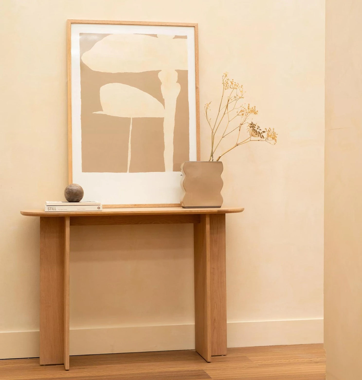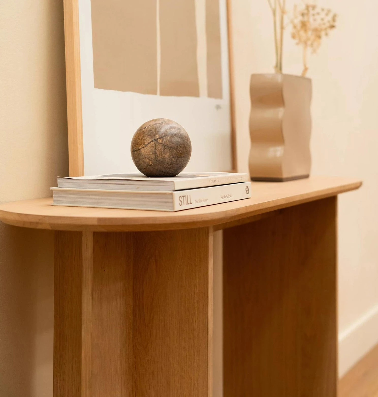 The Arrange Console Table showcases the beauty of natural wood grain with its warm and rustic appeal, adding a touch of organic charm to any entryway or living area.