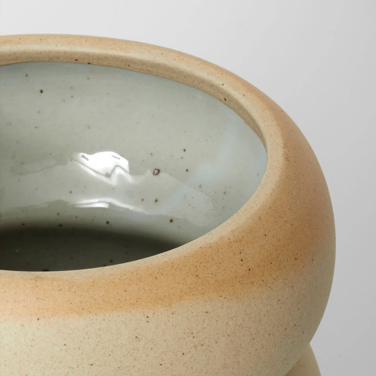 The Billie planter features a quirky curved shape with a clear glazed interior. The planter is finished with a matte porcelain exterior with natural flecks showing throughout.