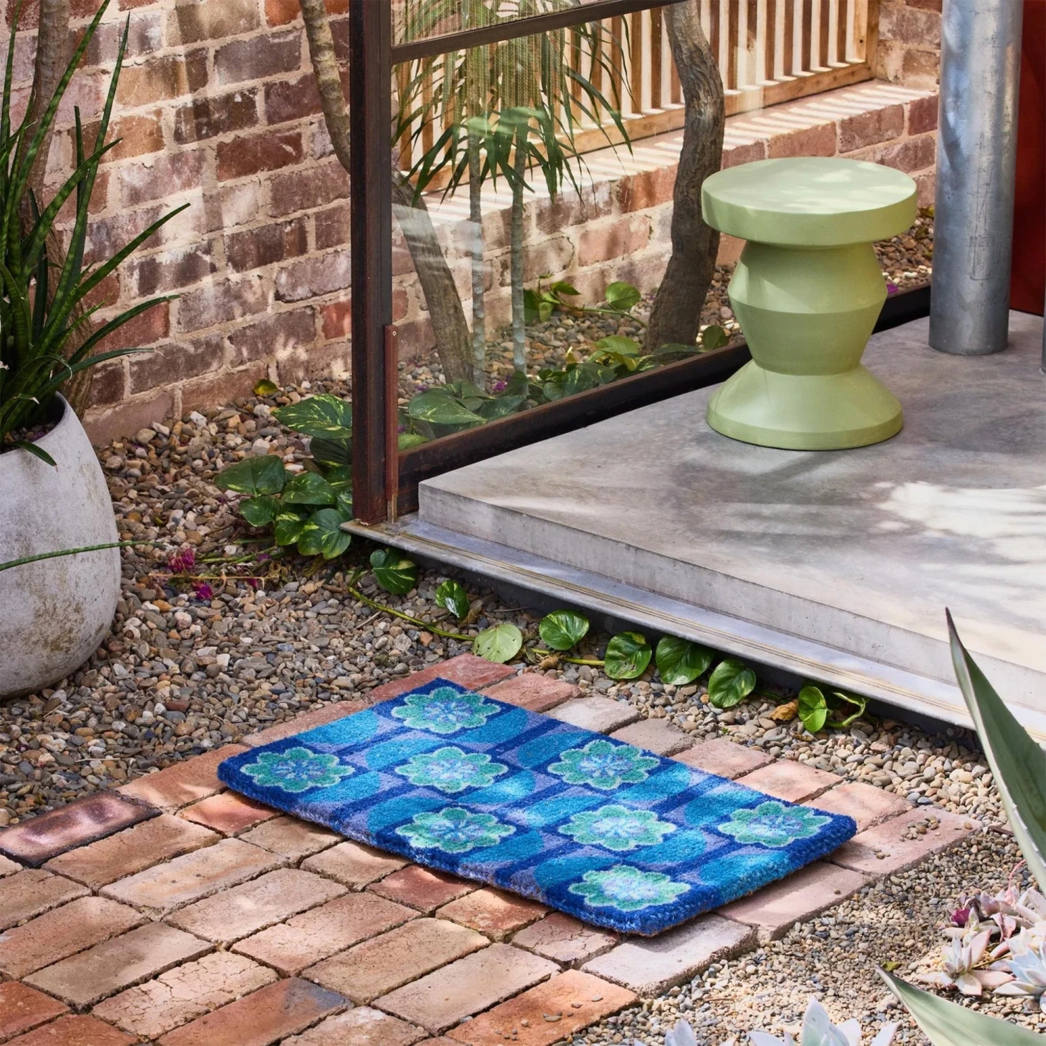 Our Bloom Blue door mat features original artwork by Bonnie printed on coir. These colourful pieces create a vibrant entrance to any space. With unique colours and patterns these doormats are a great addition to your home and also make an excellance gift.