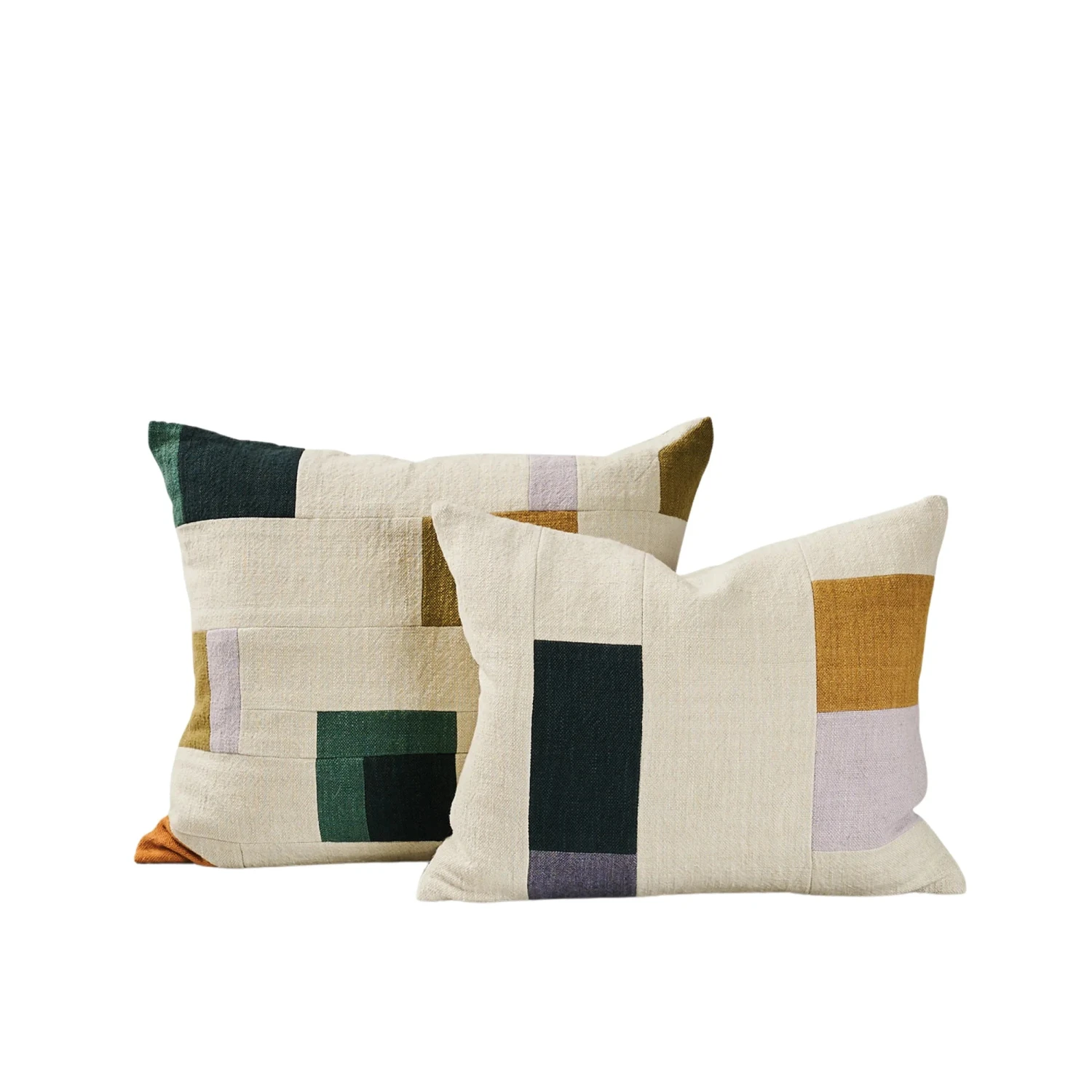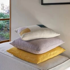 This cushion shows an abstract interpretation of iconic shapes and angles, with the colours softened for modern living spaces. Made from a linen-cotton blend to create a soft, mid-weight fabric.