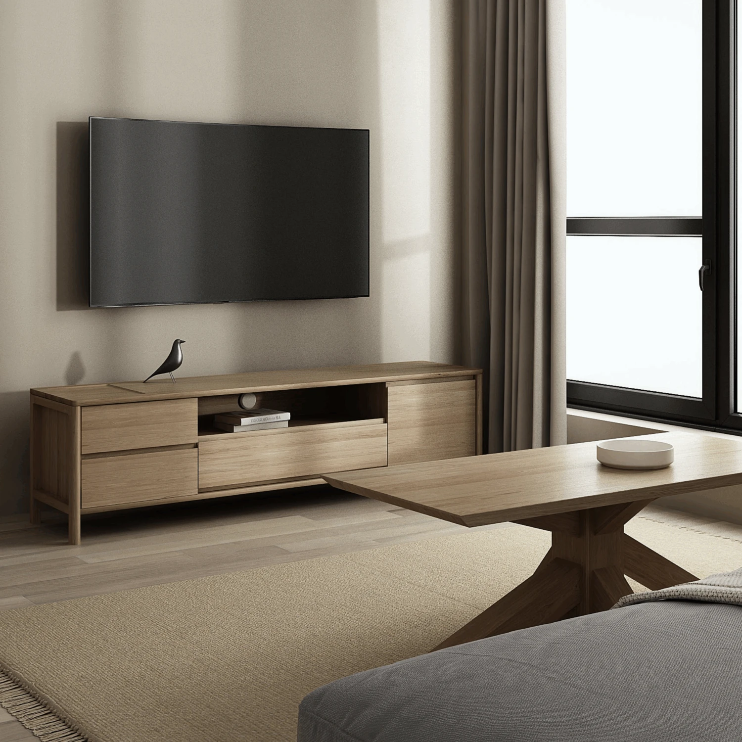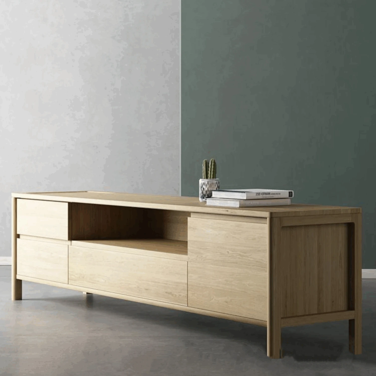 Circa Media Cabinet W/ 2 Drawers Flip – Oak