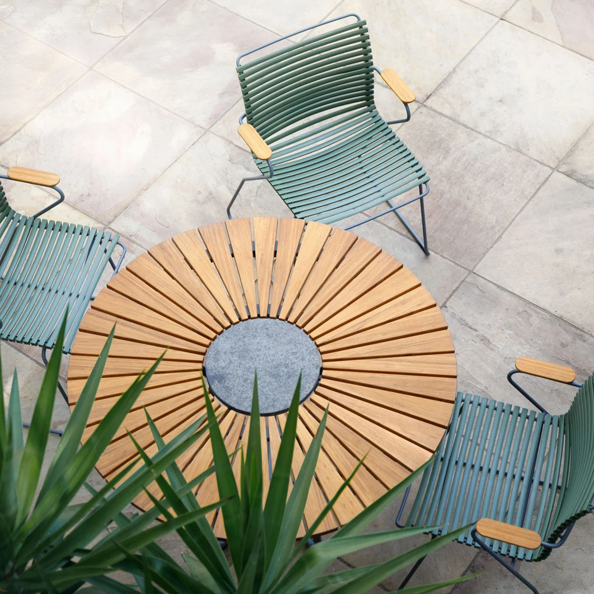 The Click Outdoor range from HOUE is a conteporary interpretation of a traditional outdoor living ethos. Its bamboo accents add a contrasting touch to it’s slatted construction making for a versatile outdoor piece.