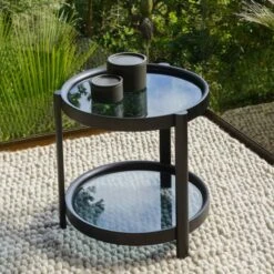 The Column Side Table adds modern elegance to your living room. The design has a sculptural aesthetic with its round, two-tier form.
