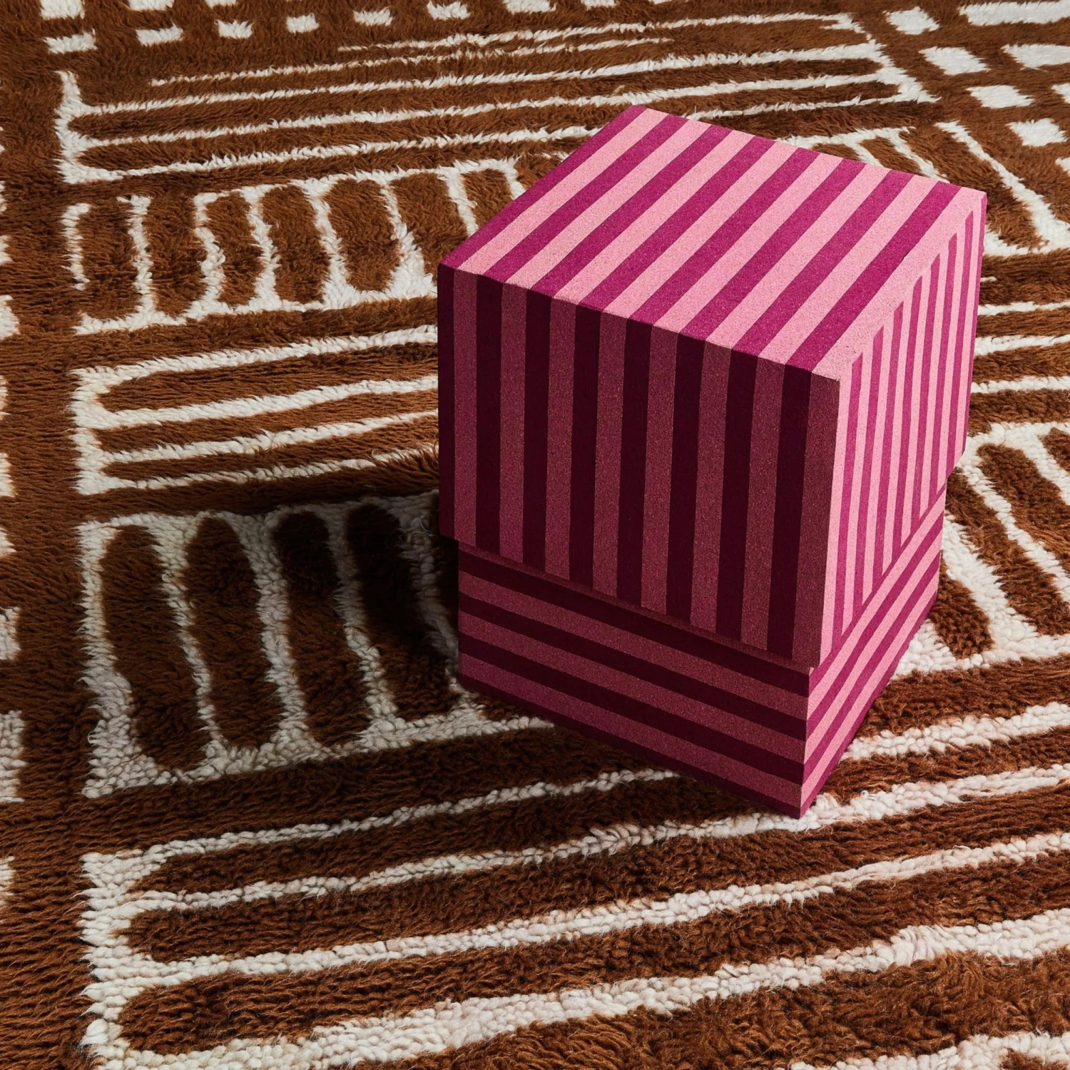 The latest addition to our collection of occasional furniture, our Cork Square Side Tables are a unique accent piece for your lounge room or bedroom. These cork side tables have a classic stripe finish across a range of colours to suit your interior look. With its contemporary shape and vibrant tones, our cork square side table in pink and cerise stripes will bring a warm finishing touch to any space.