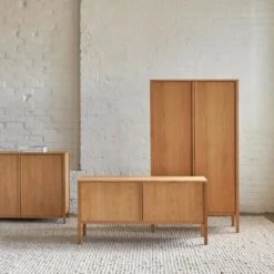 The Craft Cabinet design highlights its construction details, with its protruding handles, multiple overhangs and a frame that doubles as its leg. The design has a robust structural feel with its lipped outline creating a bold, yet subtle and elegant form.