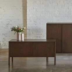The Craft Sideboard design highlights its construction details, with its protruding handles, multiple overhangs and a frame that doubles as its legs. The design has a robust structural feel with its lipped outline creating a bold, yet subtle and elegant form.