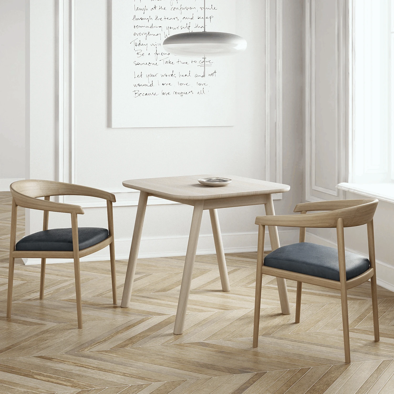 Curbus Square Dining Table 80cm – White Ash Dark