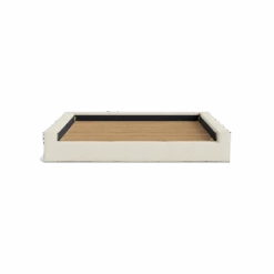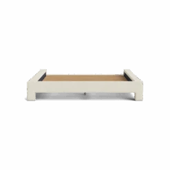 The Doze King Bed Base features a contemporary design, showcasing chunky upholstered legs. It is designed in Melbourne, and features a textural linen blend fabric that offers a unique design edge.