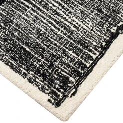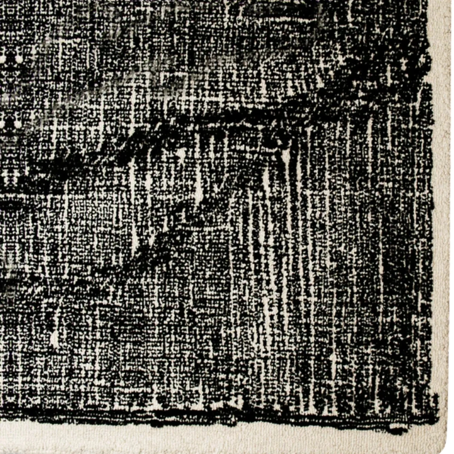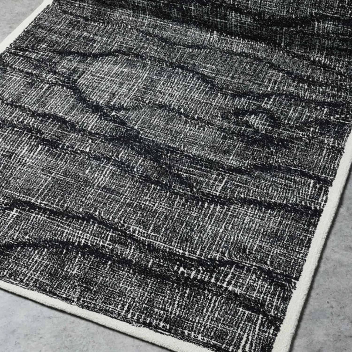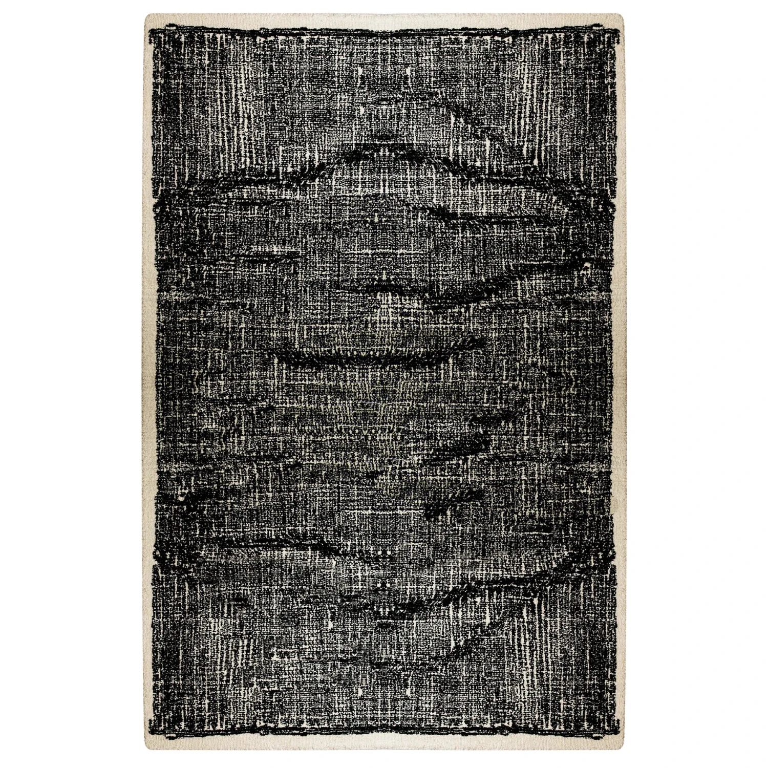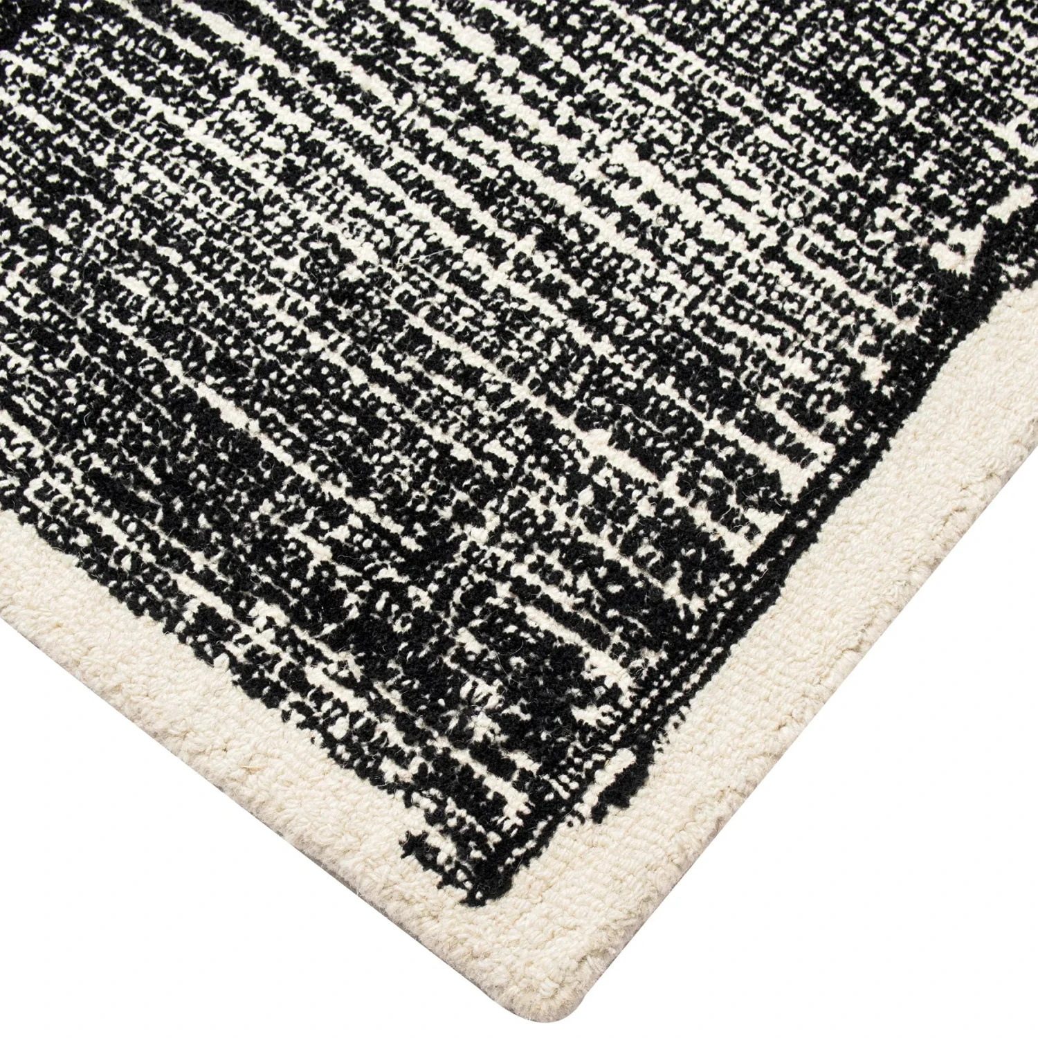 Cut a cultivated scene with our hand-tufted Elio rug. The 100% wool design references an ink print motif, further enhanced by an asymmetrical boarder. Contemporary in nature, our Elio rug speaks volumes in every space its placed. Hardwearing and durable, the loop cut pile of our Elio rug adds to its discerning style, while the black and white hue enriches the visual symphony it casts on your floors.