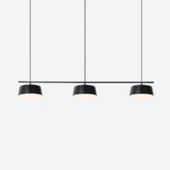Create a series of three Ellipse Pendants with the Ellipse Connection Bar. The small black bar is designed to accommodate three small Ellipse Pendants (sold separately). The connection bar integrates into a range of settings and makes a strong statement when styled above a kitchen bench or dining table.