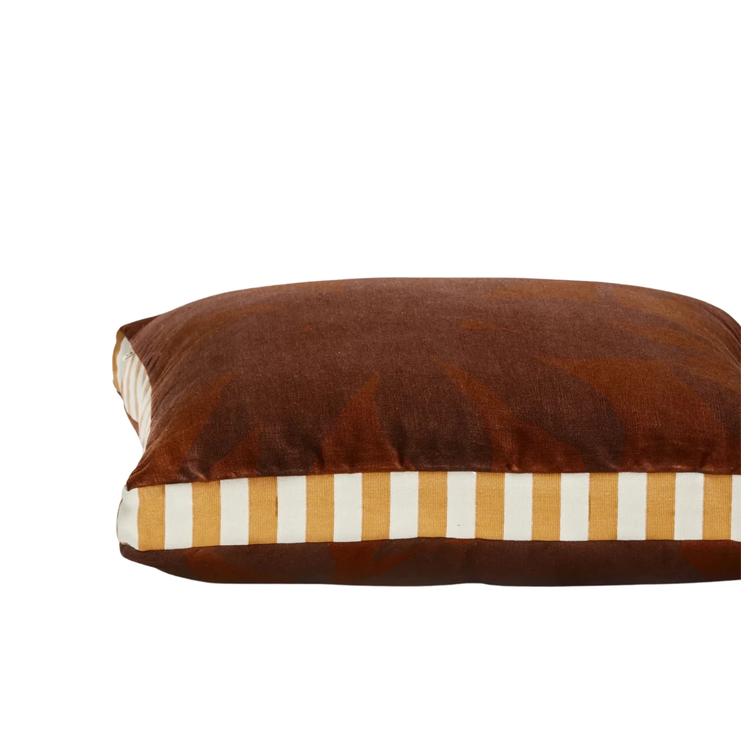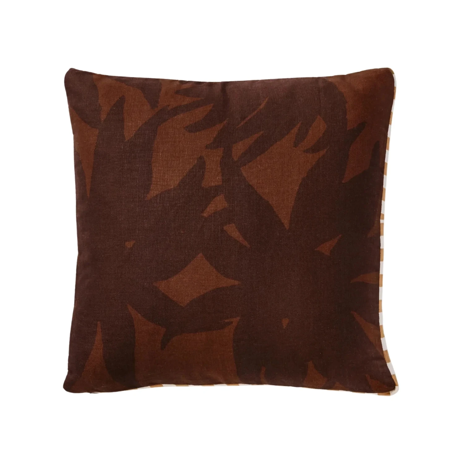 Indulge in the rich, grounding warmth of the Fleur Chocolate Cushion. The rich, chocolate tone enhances the reverse shadow motif, subtly echoing the delicate star-shaped petals of our Flannel Flower design. This brown floral cushion is perfect for creating a warm, inviting space—whether layered with soft neutrals for a sophisticated look or paired with brown and tan tones for an autumnal palette