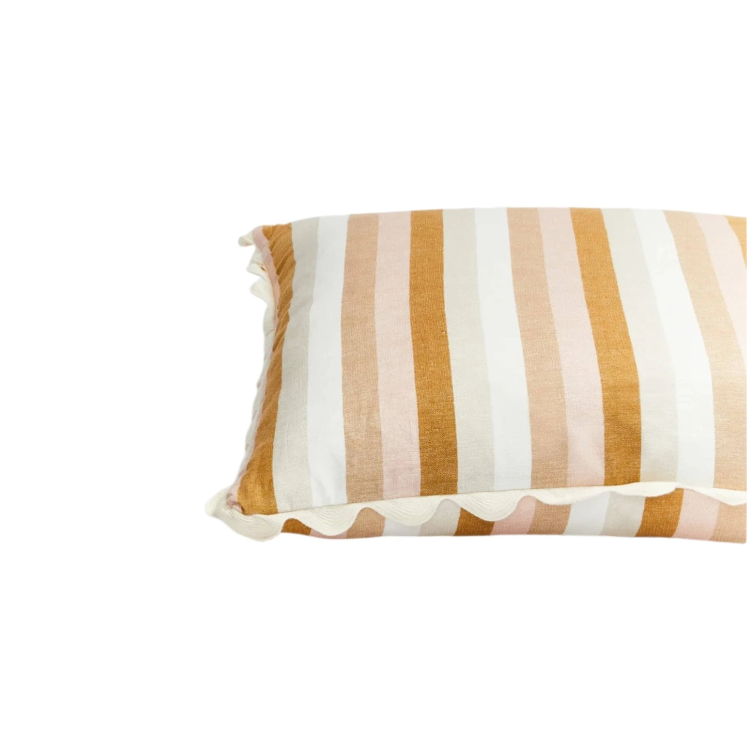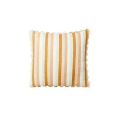 Our Florence Stripe Wheat 60cm cushion is made from soft woven cotton. From our Florence collection, this 80cm x 80cm cushion is finished with a cream scalloped trim and includes a plush feather insert. Our cushions have the most impact when styled together using complementary designs, trims and colours.