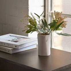 The Fossil vase design features subtle organic form that is highlighted when the light hits from the side. The ceramic vase can be filled with flowers or displayed as a sculptural object on its own. The bisque finish creates a beautiful contrast with the glazed interior. Designed in our New Zealand studio by Nikolai Sorensen and David Moreland. Handmade in Portugal.