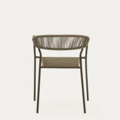 Futadera outdoor chair in green synthetic cord and green painted steel. Seat and backrest are made from synthetic cord which is UV resistant. Comfort and design unite in this chair. Suitable for outdoors. Chairs stack to save on storage space. Stackable up to 4.