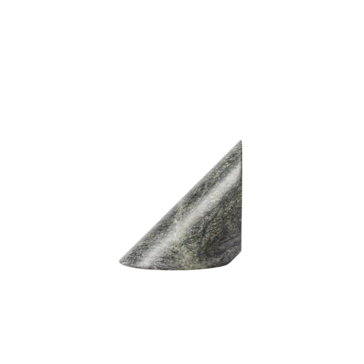 The Geo Marble Wedge can be displayed as a bookend or a sculptural object on its own. The complex tones are reminiscent of the rich forest floor, as seen from above. The wedge is skilfully hand-carved from forest green marble. The natural minerals found within marble can add to the character and makes each piece completely unique.