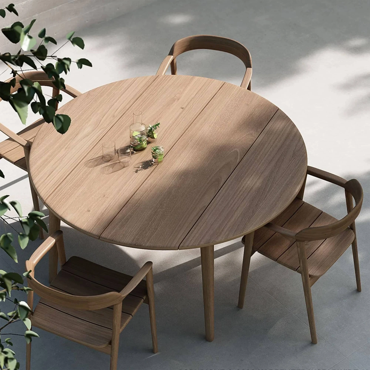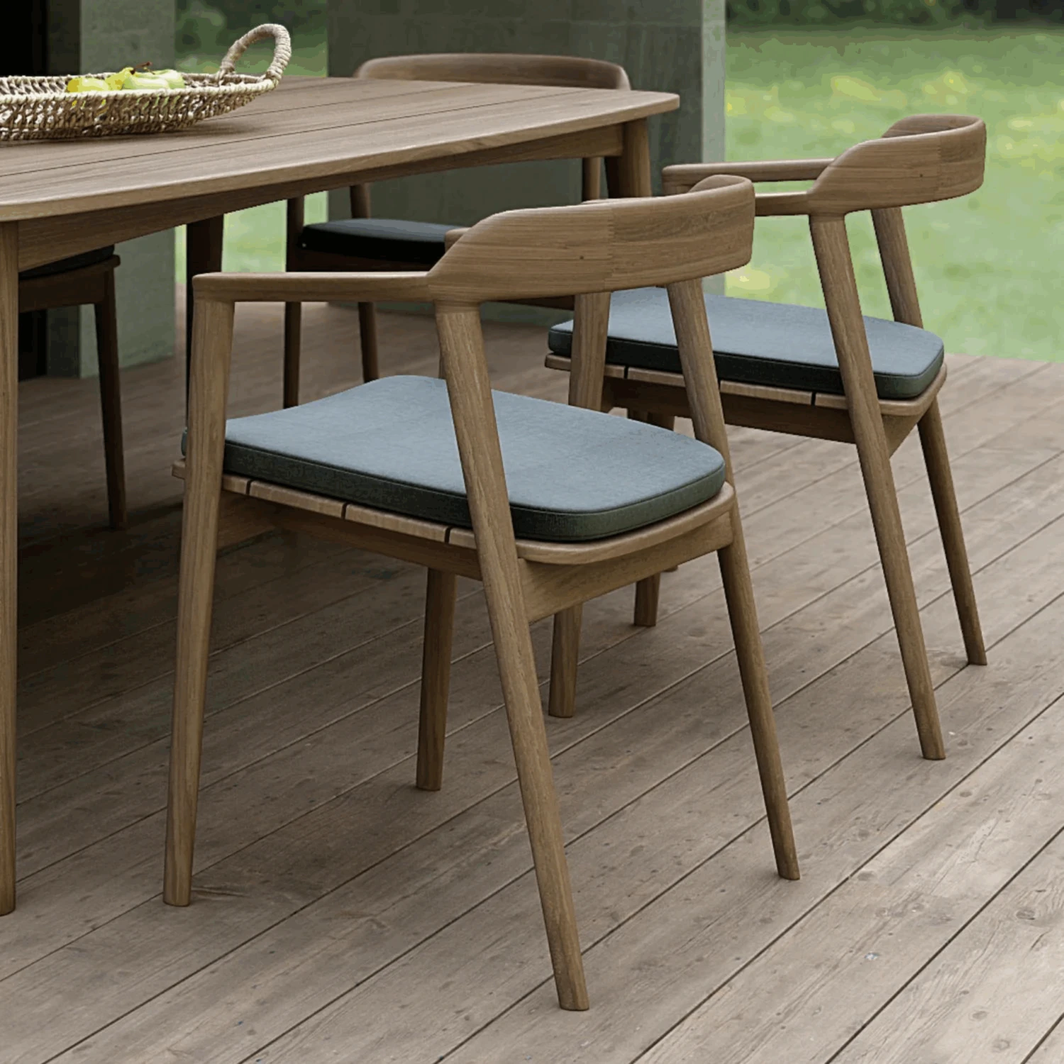 A teak outdoor armchair designed for multi-use would be a great addition to any patio or backyard. Teak wood is a popular choice for outdoor furniture because it is naturally resistant to moisture, rot, and insects, and is a strong and sturdy wood that can withstand heavy use. The armchair with multi-use design means it can be used for different purposes, such as dining, lounging, or as a side chair for a conversation area.