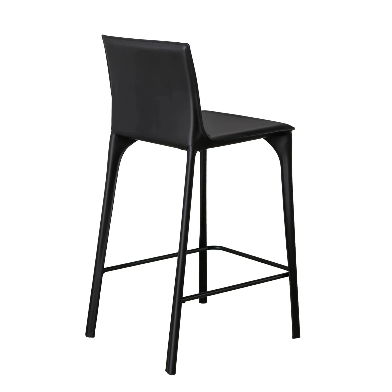 This leather counter stool combines contemporary style with comfort, featuring a seat, backrest, and legs all wrapped in smooth, high-quality leather. Designed to complement a range of decor styles, this stool adds a sophisticated touch to any kitchen or bar. Its ergonomic backrest and plush seat provide exceptional comfort, making it perfect for long conversations and gatherings.