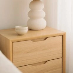 Clean and all-natural take centre stage with the Harper Bedside Table – Oak. The clean lines and natural wood finish are a perfect sidekick to a modern and sleek bedroom. Made from Solid American Oak legs and Natural Oak Veneers, our artisans have crafted this piece with the very best materials and design. Store treasures, memories and more with two roomy drawers, its surface is just the right size for a lamp or a current read.