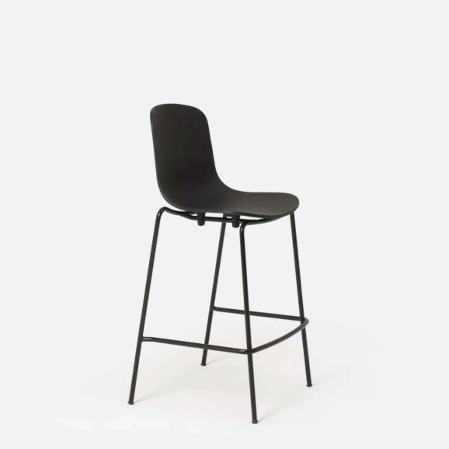 The considered design of the Holi stool allows you to relax your back while maintaining a comfortable seating position. Its metal base, powder-coated in black, perfectly complements the contoured polypropylene shell, resulting in a sleek, monotone aesthetic.