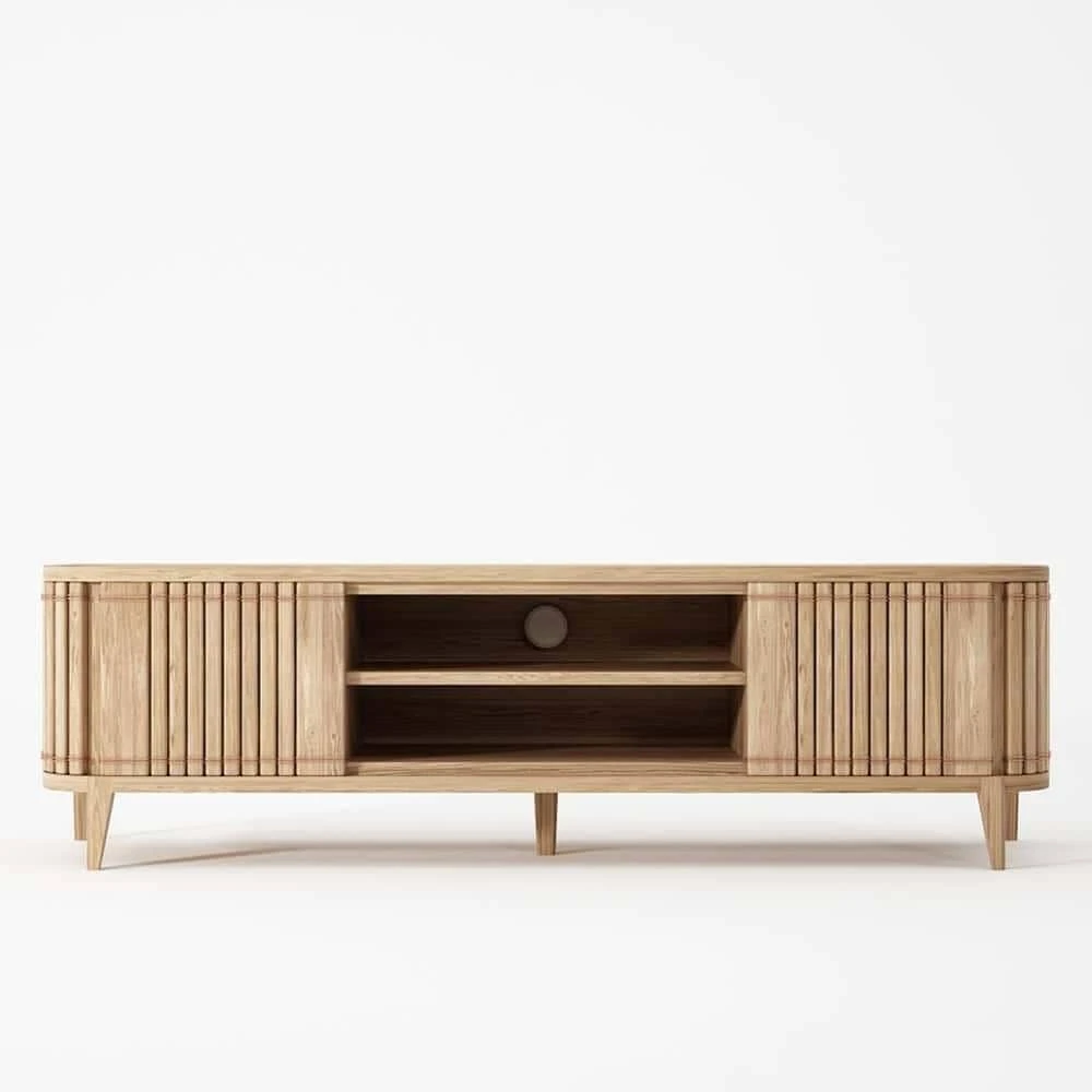 The Koppar Media Cabinet features timeless modern design with smooth curves that accentuate any room its used in. The Koppar range enhances the beauty of its solid oak construction with beautiful copper accents.