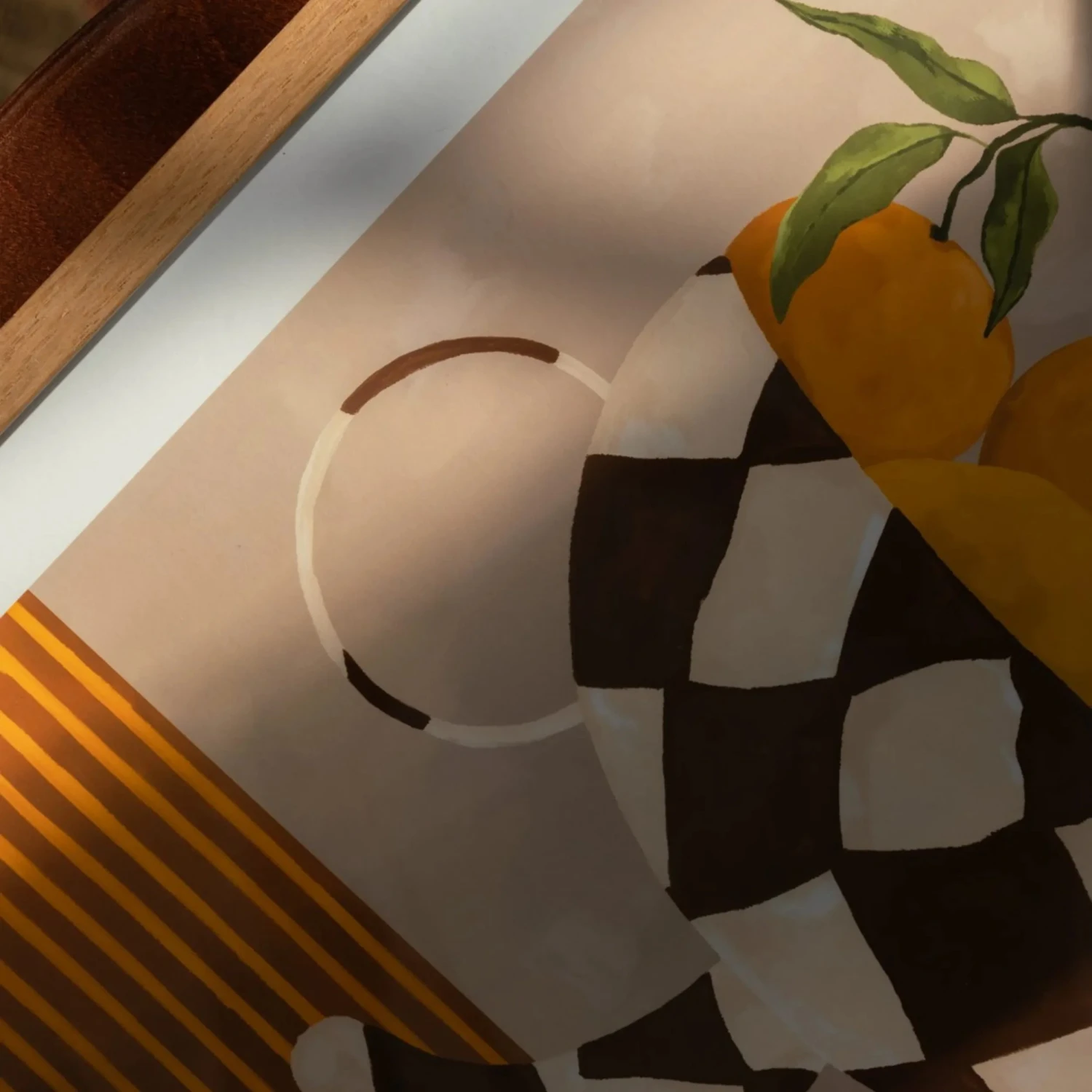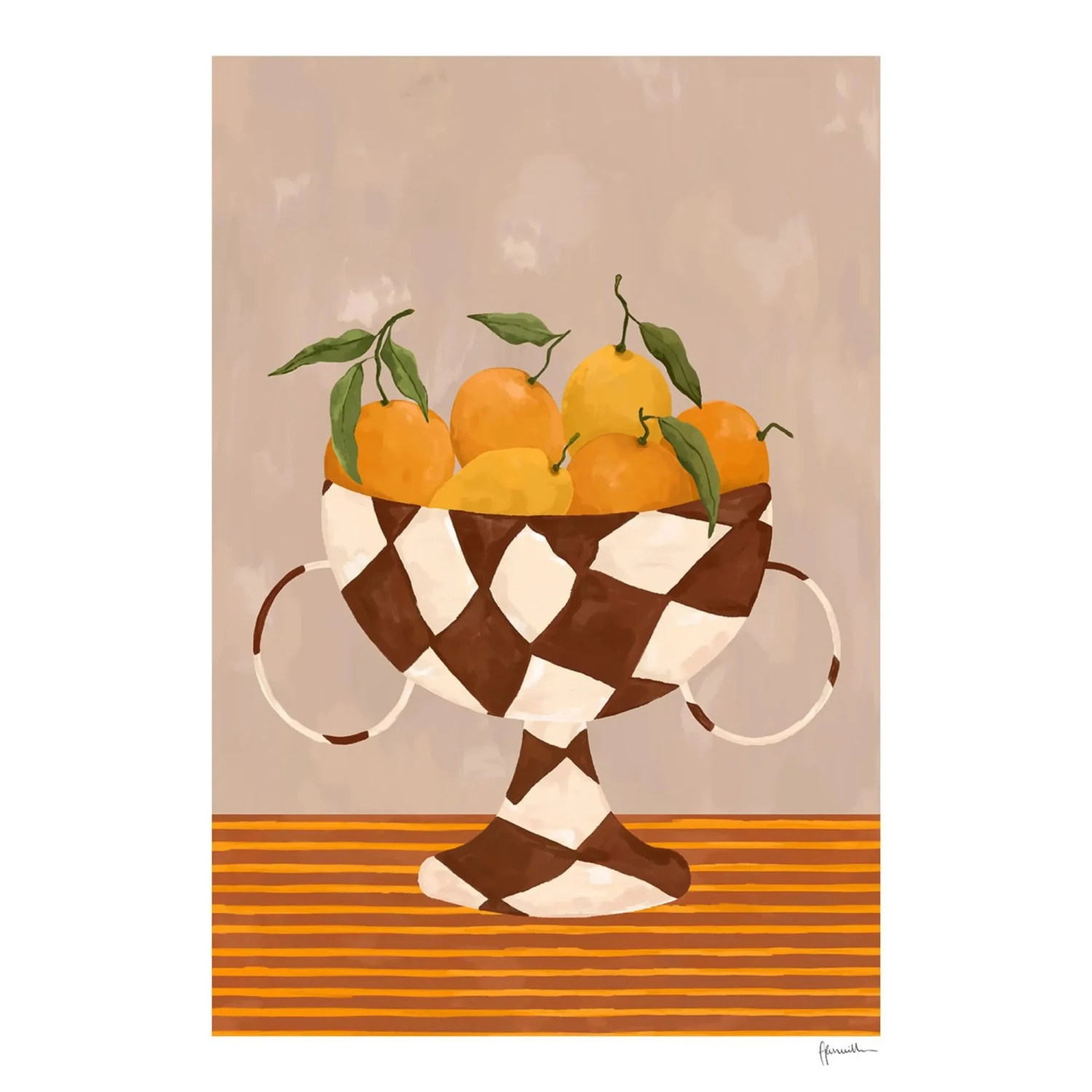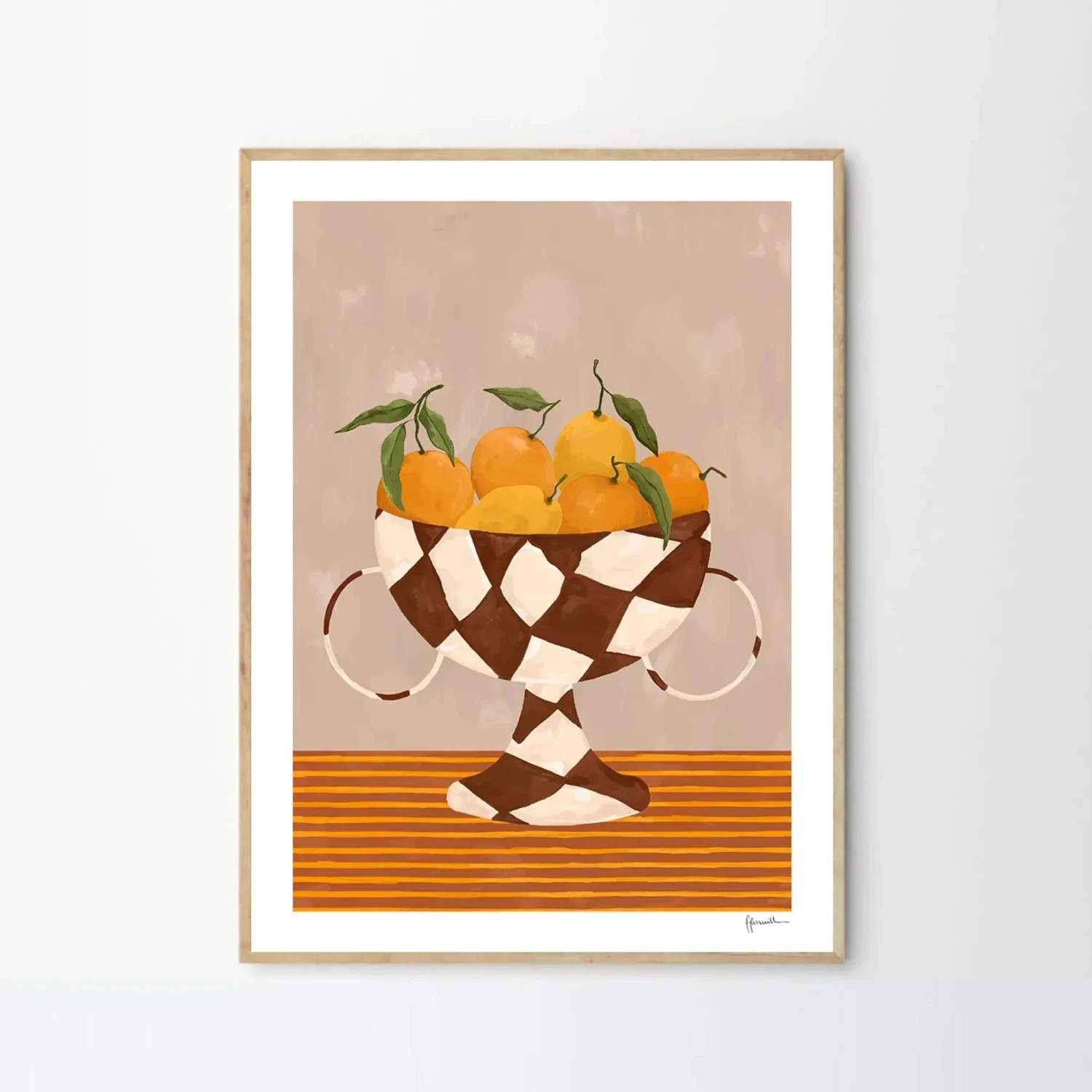 Lemons & Oranges In Checkered Vase Print 40cm X 50cm