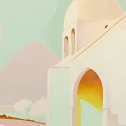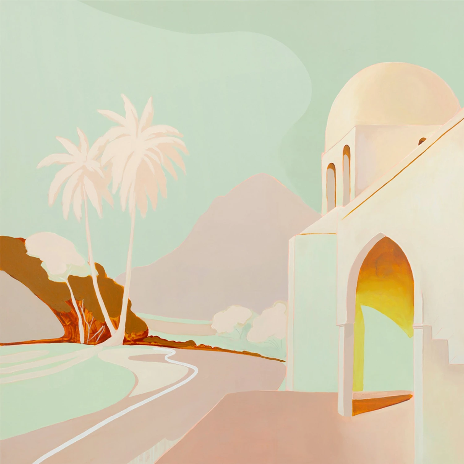 Welcome to Imaginal – it’s a bit of an adventure, really. This series explores new territory with these paintings. Picture this: surreal, timeless scenes of an imaginary place that feels a bit like Morocco with a splash of Palm Springs. Mysterious female figures move in and out of scene.