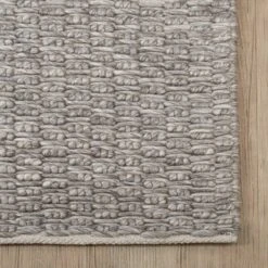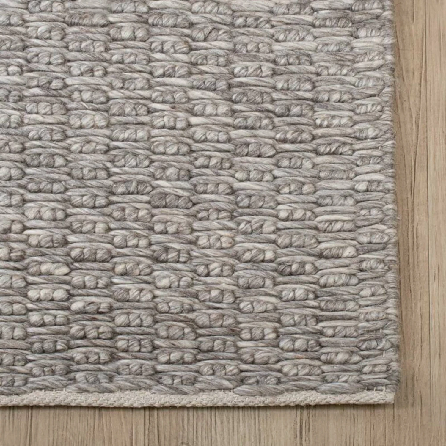 A hand woven 100% wool rug in a linear loop-pile textured weave. The unique texure detailing in the rug adds warth and depth to any space. With its versatile design and neutral color palette, this rug is perfect for any space. Its understated elegance and soft texture effortlessly blend into various decor styles, making it a versatile and inviting addition to any room.