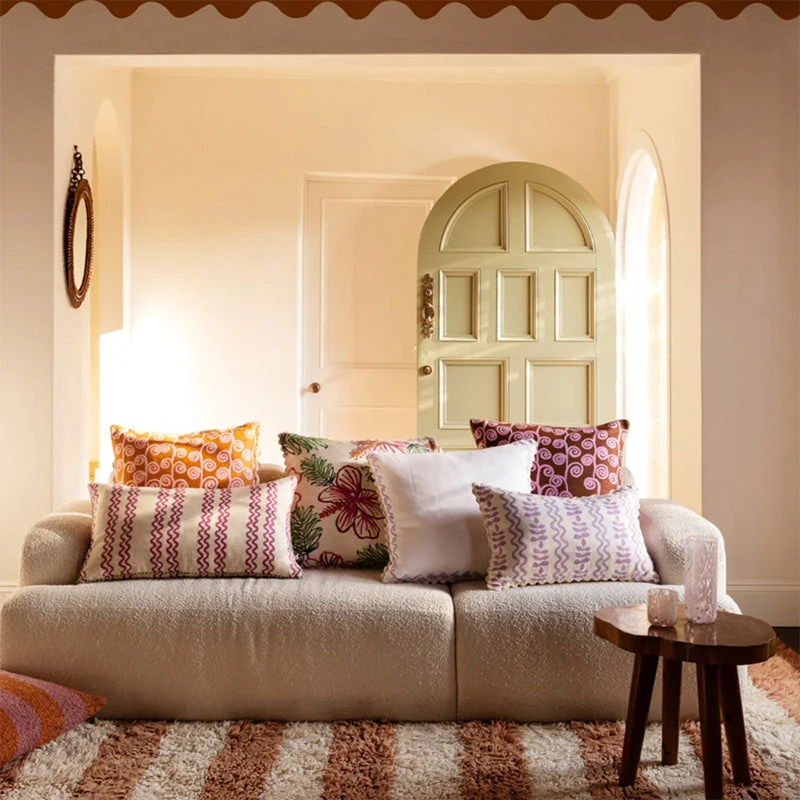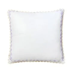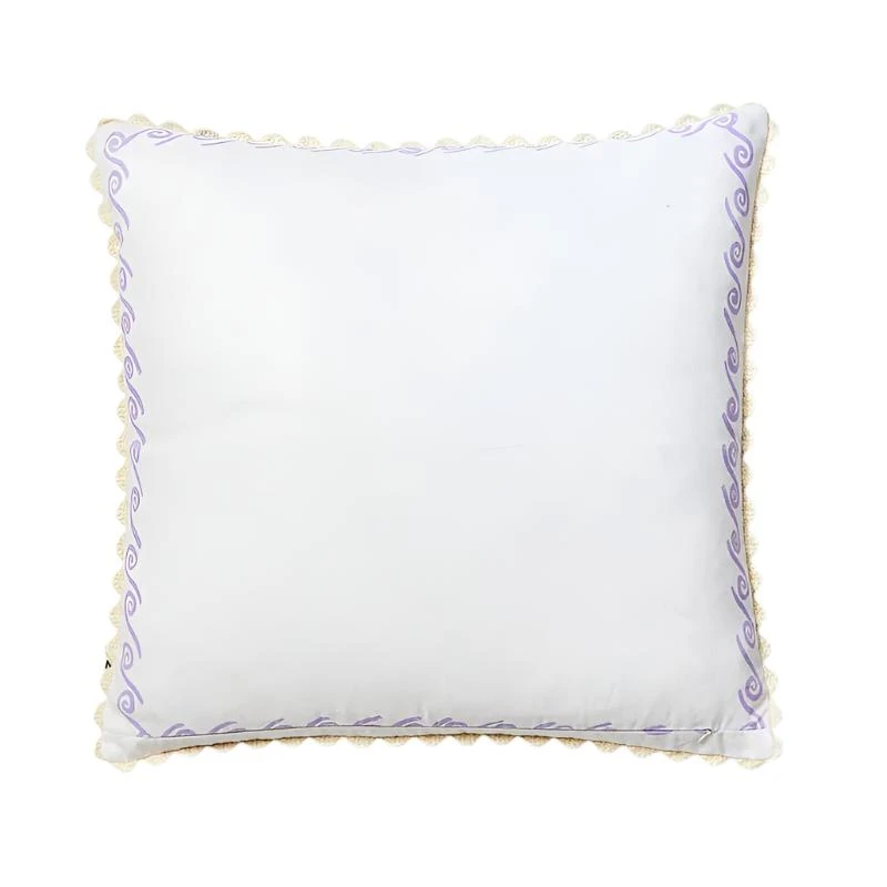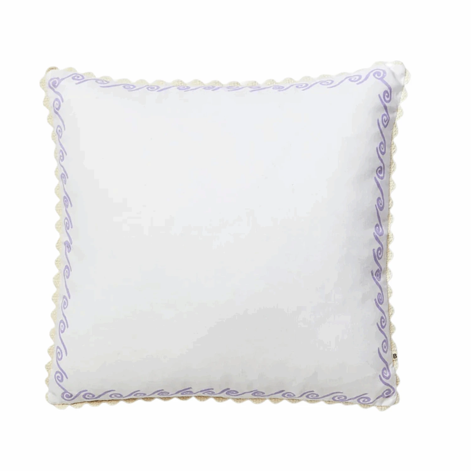 Our Mini Surf Lilac 60cm cushion features original artwork by Bonnie printed on white linen. The reverse of the cushion features the same design.From our Waikiki collection, this 60cm x 60cm cushion is finished with a cream scalloped trim and includes a plush feather insert.
