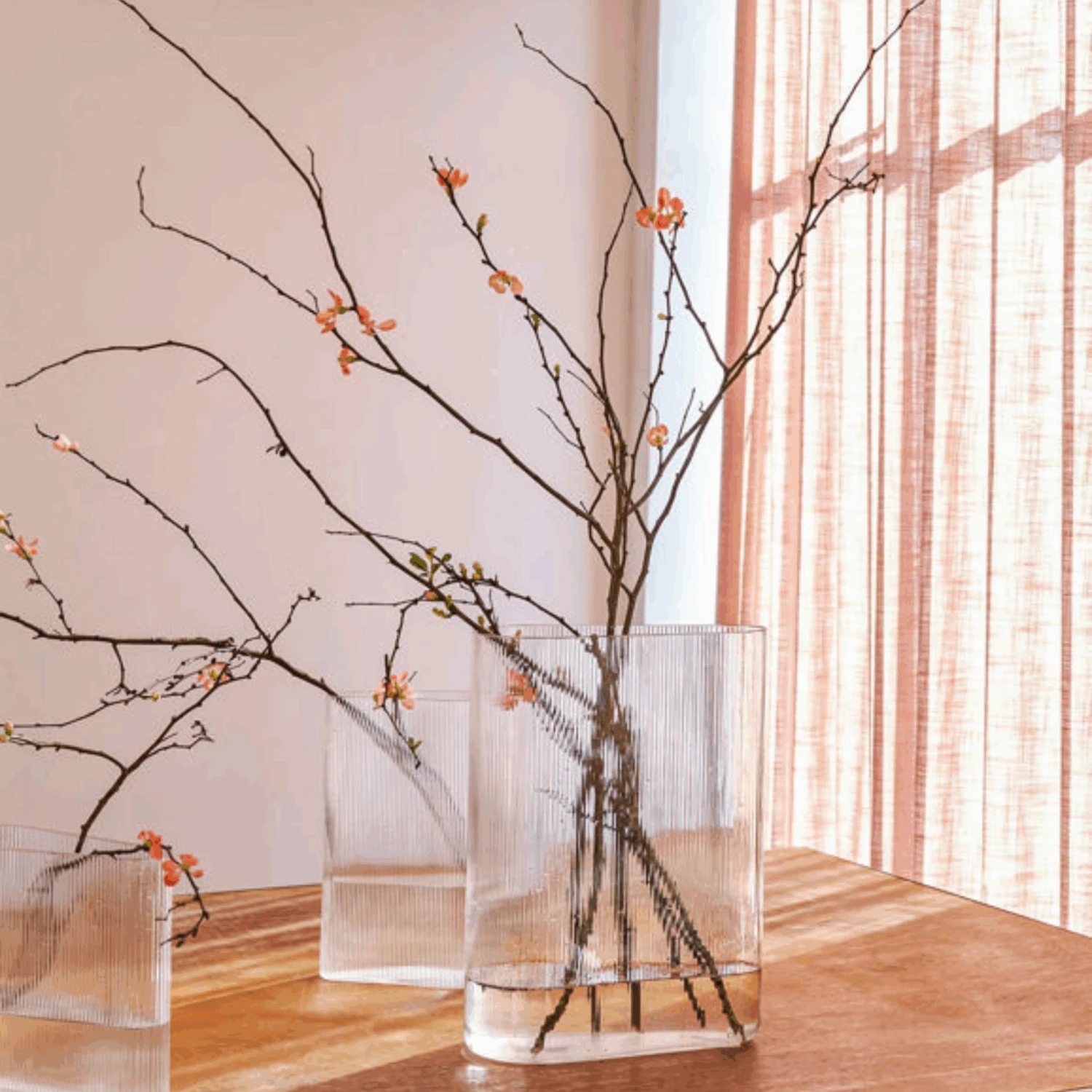 The Mist Vase is made in an extraordinary clear yet corrugated glass. The rippled effect creates an optical illusion reflecting the different colours of the contents in an almost magical way. Flowers particularly are beautifully presented in these vases.