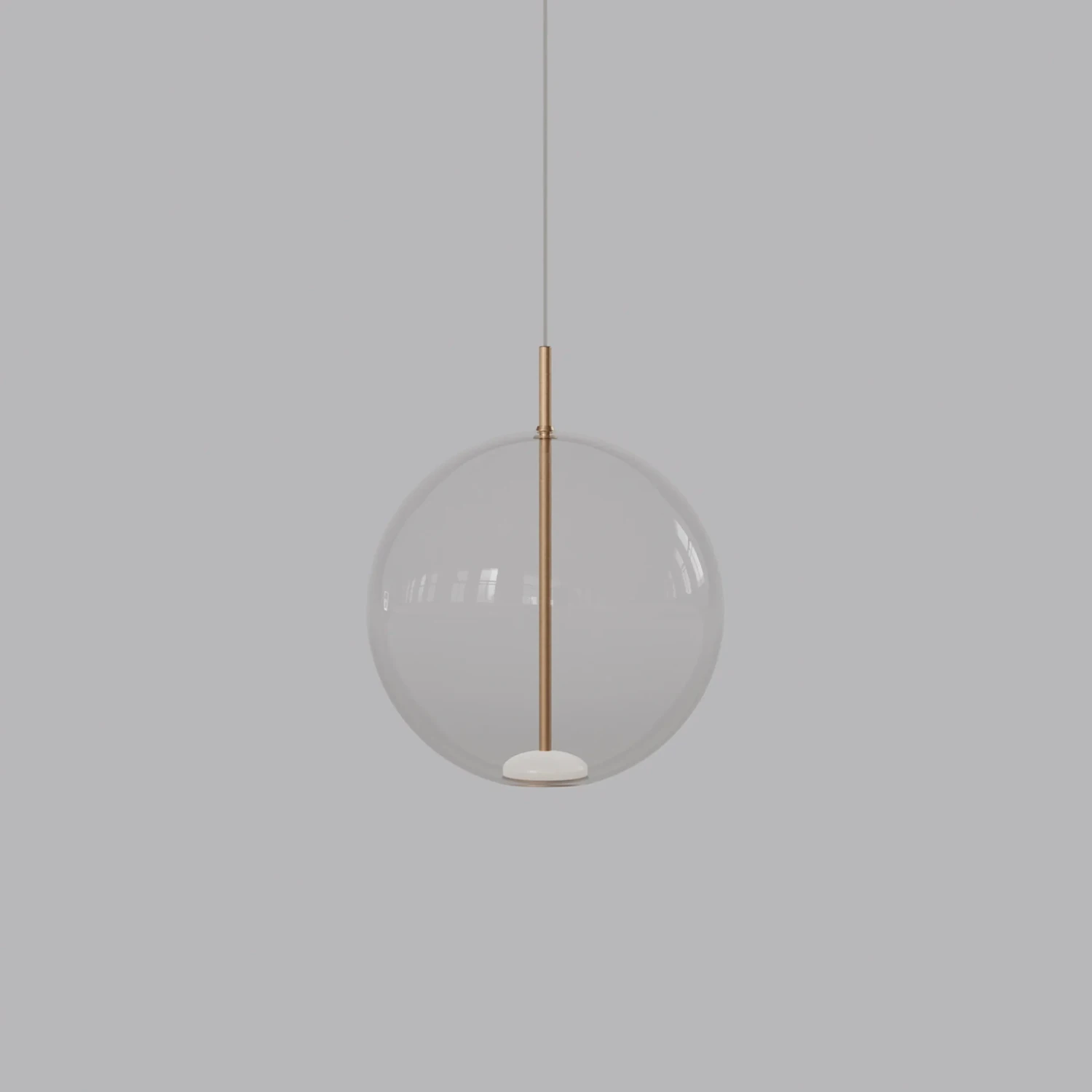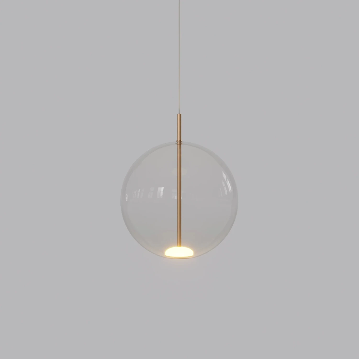 Orb Air Pendant Light by Lighting Republic showcases a borosilicate glass sphere, meticulously crafted to evoke a sophisticated weightlessness. A refined brass rod intersects the sphere, housing a radiant dimmable LED light source. Orb Air’s familiar yet captivating form emanates a celestial ambience, providing the perfect fusion of contemporary aesthetics and timeless elegance.