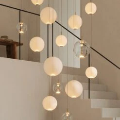 Orb Air Pendant Light by Lighting Republic showcases a borosilicate glass sphere, meticulously crafted to evoke a sophisticated weightlessness. A refined brass rod intersects the sphere, housing a radiant dimmable LED light source. Orb Air’s familiar yet captivating form emanates a celestial ambience, providing the perfect fusion of contemporary aesthetics and timeless elegance.