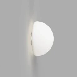 Orb Dome Mirror Wall Light by Lighting Republic features a half sphere shade and is versatile enough to compliment to any space. Minimal, not only in its form but its style, the glowing illumination lightens not just the room but the mood. With its dome, the opal glass softens and diffuses the light.