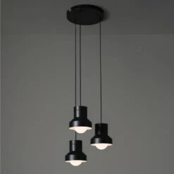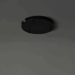 Create a modern chandelier with the Pendant 45 Rose. The black ceiling rose is designed to accommodate three Pendant 45 (sold separately) and enables them to hang in a tight waterfall formation. The ceiling rose is made with mild steel and has a matte black powder-coat finish. Cord grips are made with colour-matched black plastic. Designed in New Zealand by David Moreland.