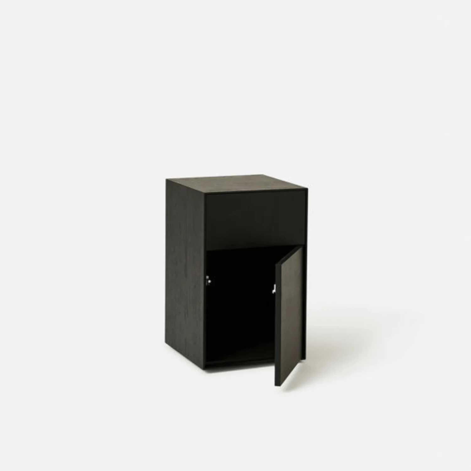 The Plinth Bedside considers compact spaces with its slender design. The bedside measures a convenient 35cm-wide, making it ideal for apartment living and smaller bedrooms. Provides functional storage solutions with a top drawer and opening cupboard. Stow and access items with the sleek push-to-open technology and Hafele drawer-runners.