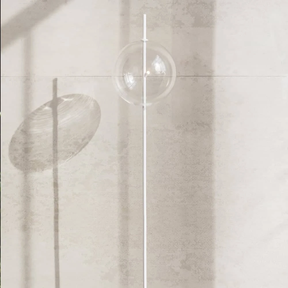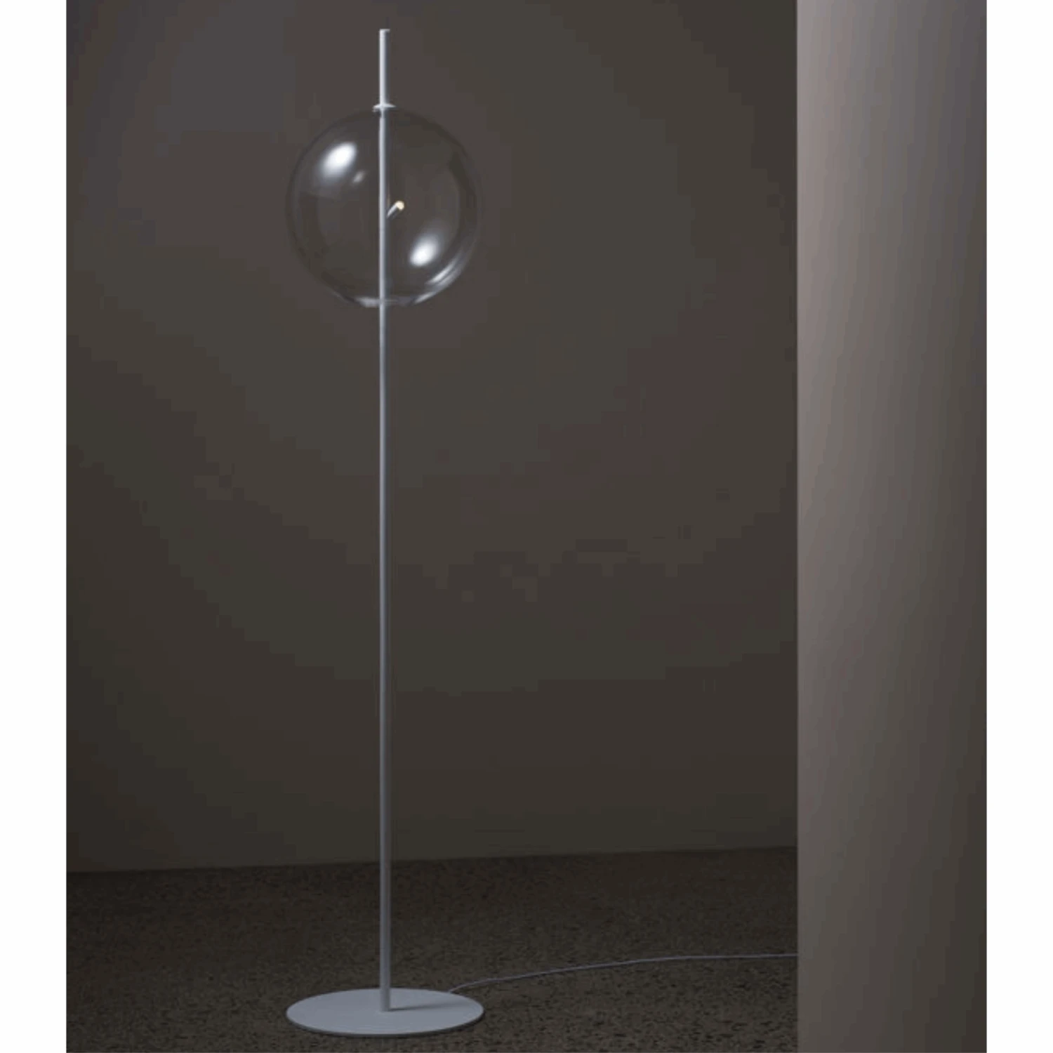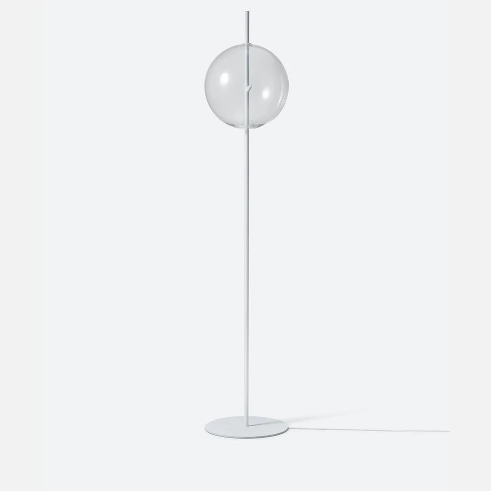The Point Floor Lamp is the result of a collaboration between product designer Alex Buckman and Città ’s 3D design team, David Moreland and Nikolai Sorensen. The unique lamp makes a statement with its spherical hand-blown glass shade and pared-back aesthetic. The lamp emits an ambient light from the clear shade. The matte black steel column has an integrated switch at the top, allowing you to dim the light with three different brightness options.
