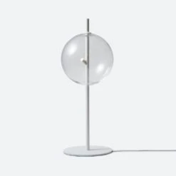 The Point Floor Lamp is the result of a collaboration between product designer Alex Buckman and Città ’s 3D design team, David Moreland and Nikolai Sorensen. The unique lamp makes a statement with its spherical hand-blown glass shade and pared-back aesthetic. The lamp emits an ambient light from the clear shade. The matte black steel column has an integrated switch at the top, allowing you to dim the light with three different brightness options.