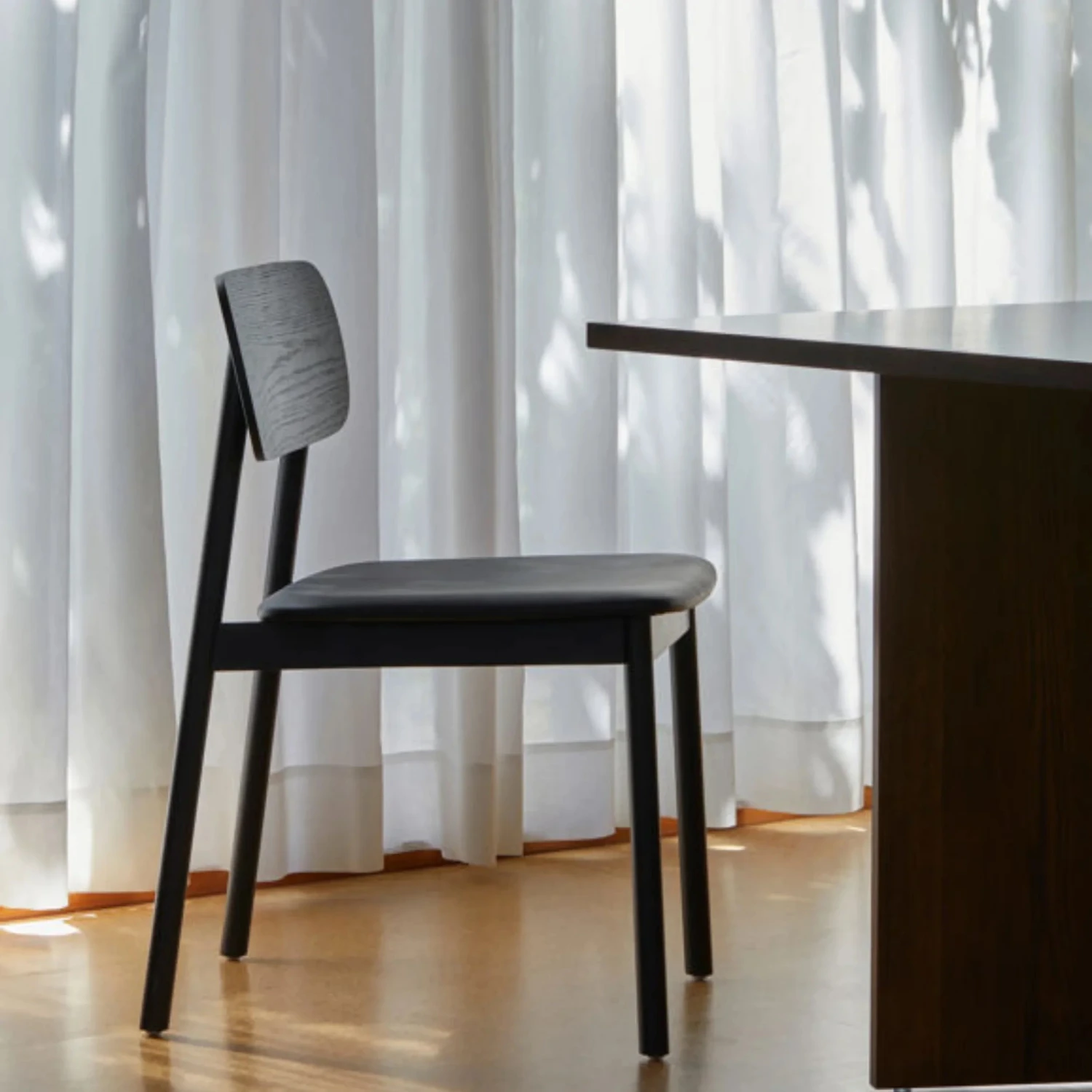 The Radial Dining Chair w/ Leather Seat adds warm and inviting seating to any setting. The stylish staple boasts a timeless aesthetic with its softly rounded edges. The chair works as a statement standalone piece or pair with the wider Radial furniture collection.