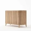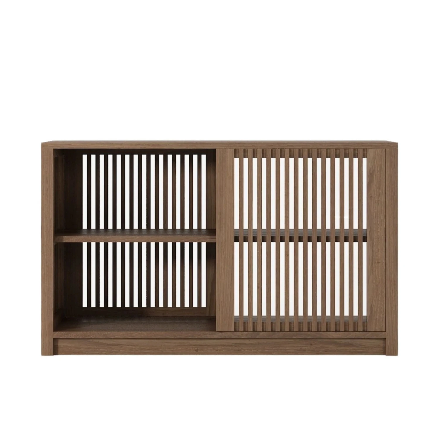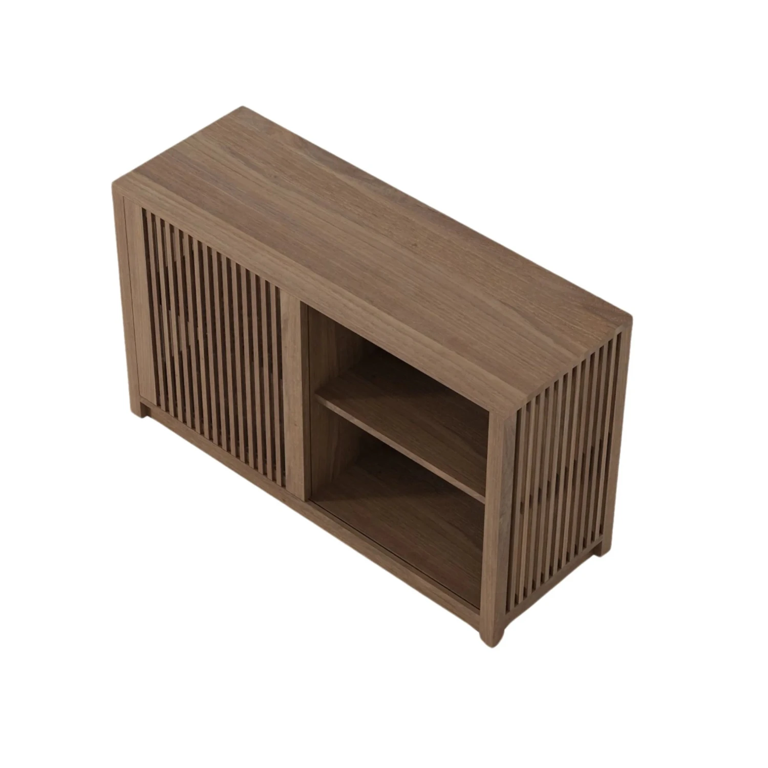 Our elegant Ray Open Sideboard with Sliding doors is inspired by the harmonious balance of form and function found in nature. Crafted from rich, durable FSC teak, the design draws inspiration from the tranquil and sturdy presence of forest landscapes, aiming to bring a touch of tranquility into your home, made for light beams to pass through serenely. With its versatile style, this piece fits seamlessly into any living room, dining area, or hallway, adding a sophisticated touch to your decor.