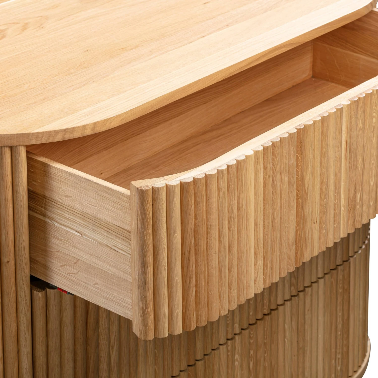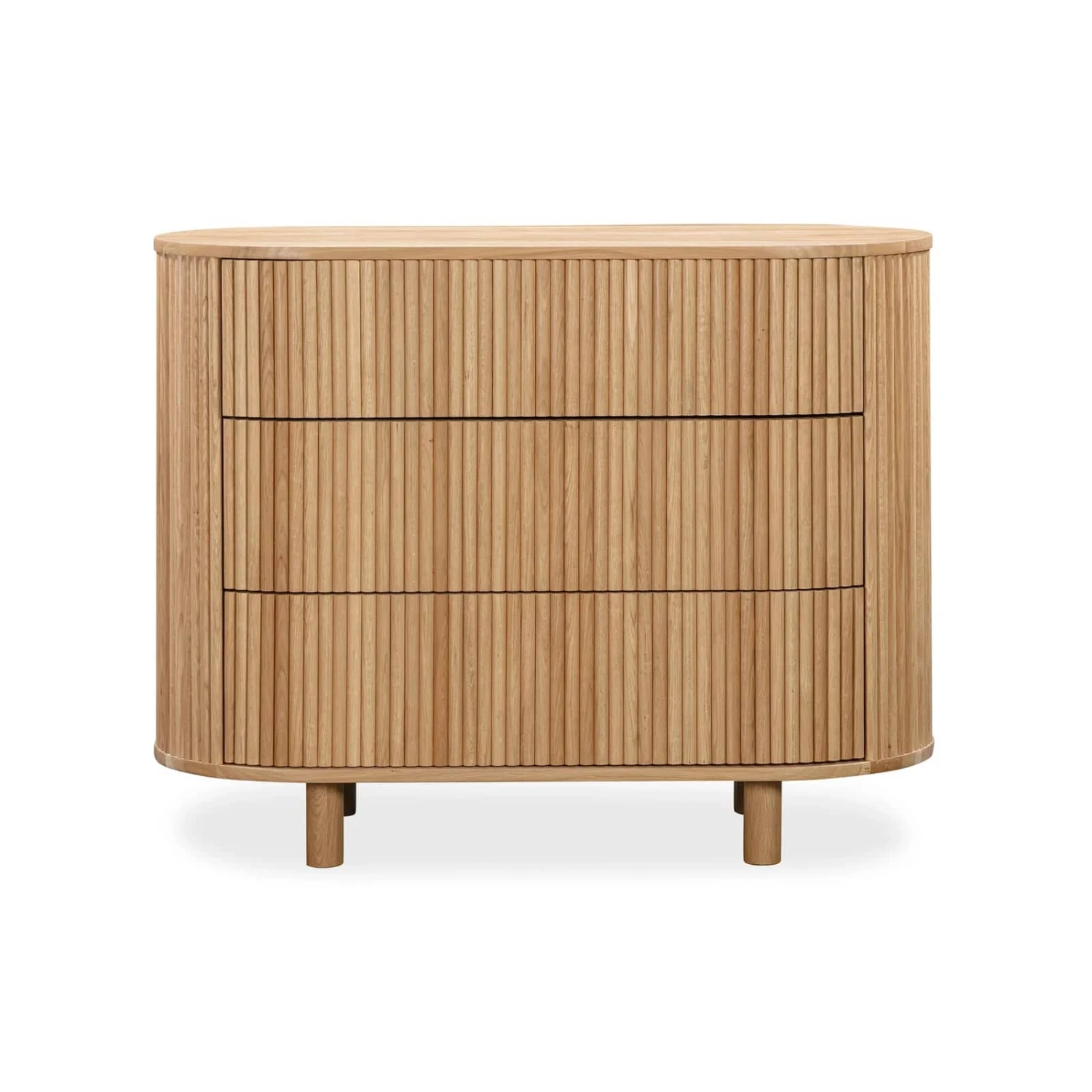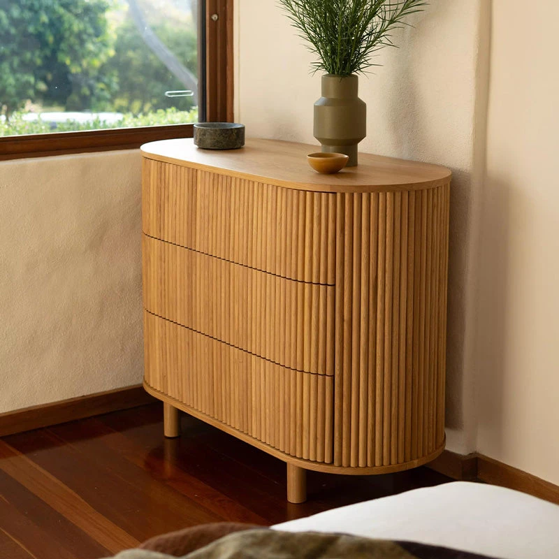 The Ripple 3 drawer chest finds the perfect mix of versatility and style. Its solid timber construction offers unique grain and patterning. Its three drawers allow for ample storage space.