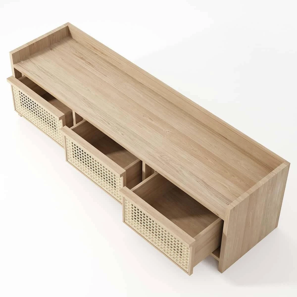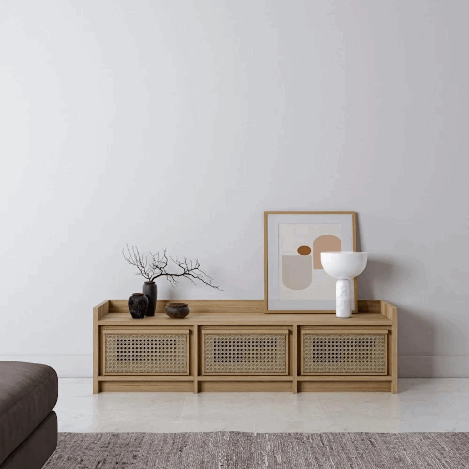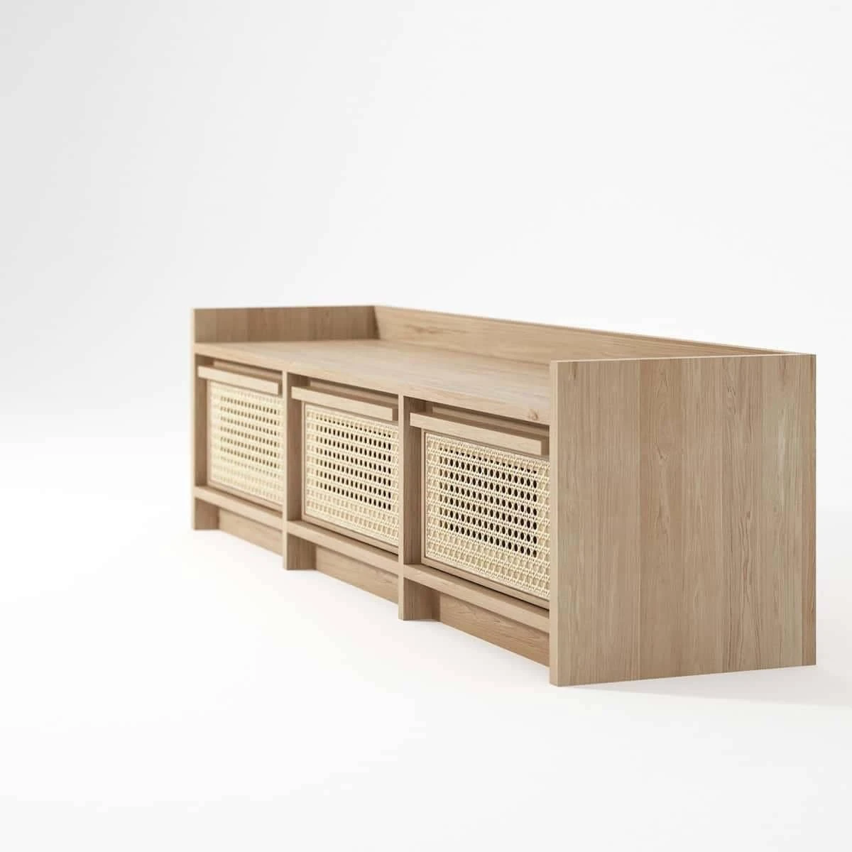 Made from ethically sourced solid European timber, & locally sourced natural rattan from Indonesia, the Roots range is designed for functionality and simplicity for todays environment. The sleek simple detail of the oak frame combined with woven rattan doors allows good air circulation for storage with two large open compartments. It can be used in the bedroom, living room, office or that nook that offers vital extra storage.