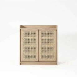 Made from ethically sourced solid European timber, & locally sourced natural rattan from Indonesia, the Roots range is designed for functionality and simplicity for todays environment. The sleek simple detail of the oak frame combined with woven rattan doors allows good air circulation for storage with two large open compartments. It can be used in the bedroom, living room, office or that nook that offers vital extra storage.