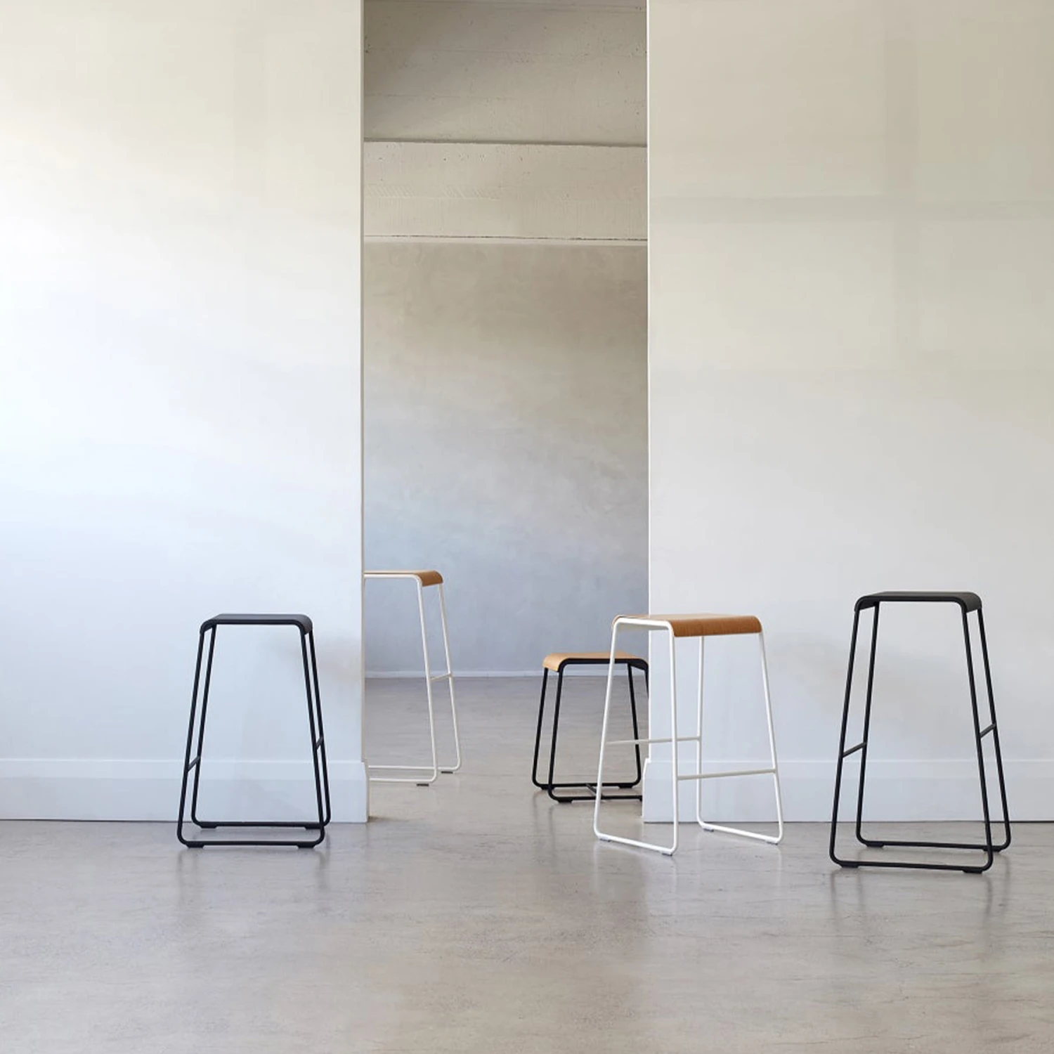 The S2 Stool is a welcome addition to any setting. The seat and frame nest together with only a thin edge profile visible. The extensive S2 Stool range comes in three heights in your choice of a black or white frame. The seats are also available with or without American oak plywood seats. The range of finish options allows the versatile stool to work in any space.