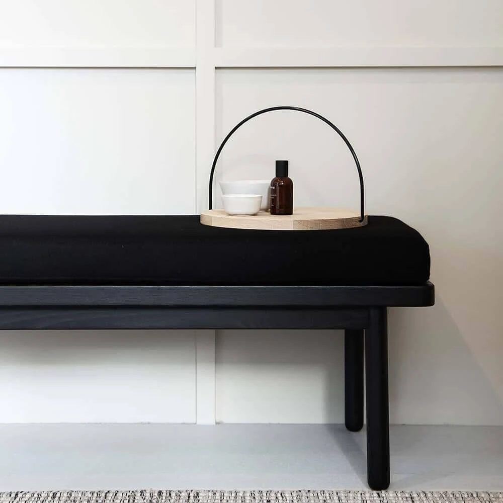 The Scout series incorporates a varied colour palette across the range, with a removable upholstered cushion on a solid Ash timber frame. The cushion attaches to the timber bench through holes in the bench top, keeping the cushion fastened securely in place.