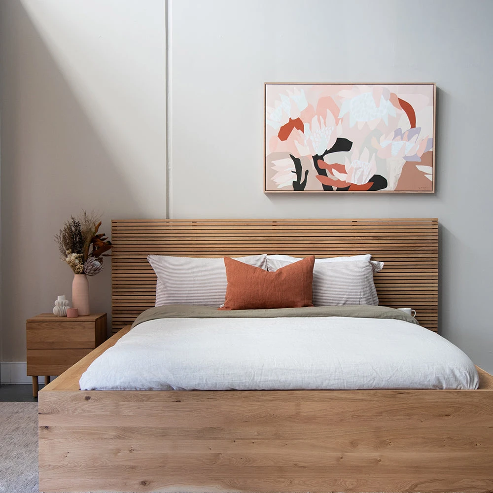 With a showstopping footboard and versatile shelf to keep a book or put on shoes in the morning, the Slice bed base is at home in any space. Its sleek design allows your mattress to sit within its refined design, but without being to visually heavy.