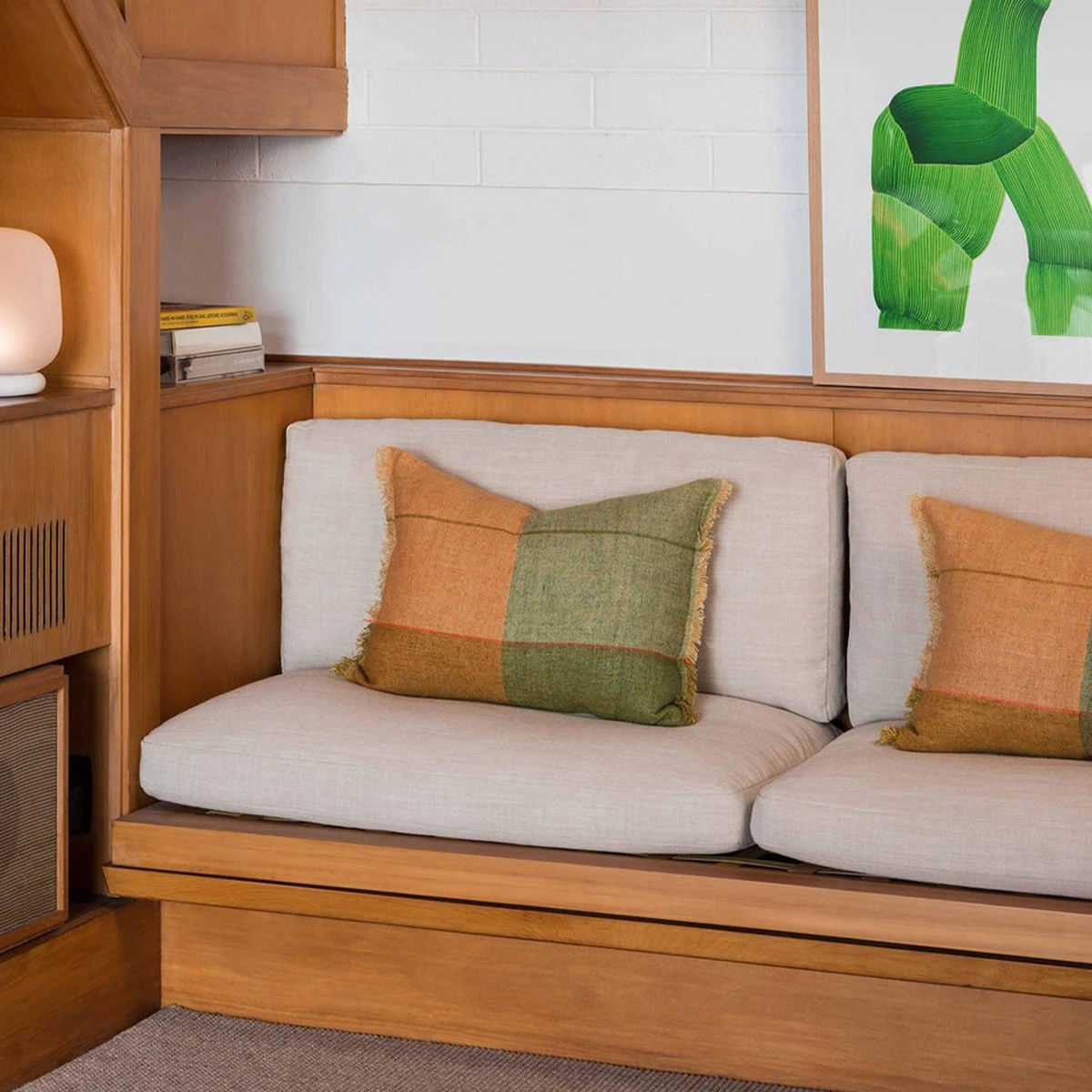 Add colour and texture to your home with the Sol Cushion Cover. Weaving techniques explore the interaction of playful colours. Made with 100% flax linen with an organic, textured finish. The short edges of the cushion are finished with a fringe detail. Designed in New Zealand by Citta’s in-house textile designers Imogen Tunnicliffe and Sophie Clapson.