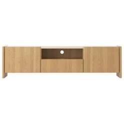 The Stella entertainment unit in natural oak with a travertine top brings a touch of modern elegance to your home. The warm oak frame complements the sleek travertine surface, offering a perfect combination of strength and beauty. Ideal for storing electronics and displaying décor, it adds both style and practicality to any living room or media area.