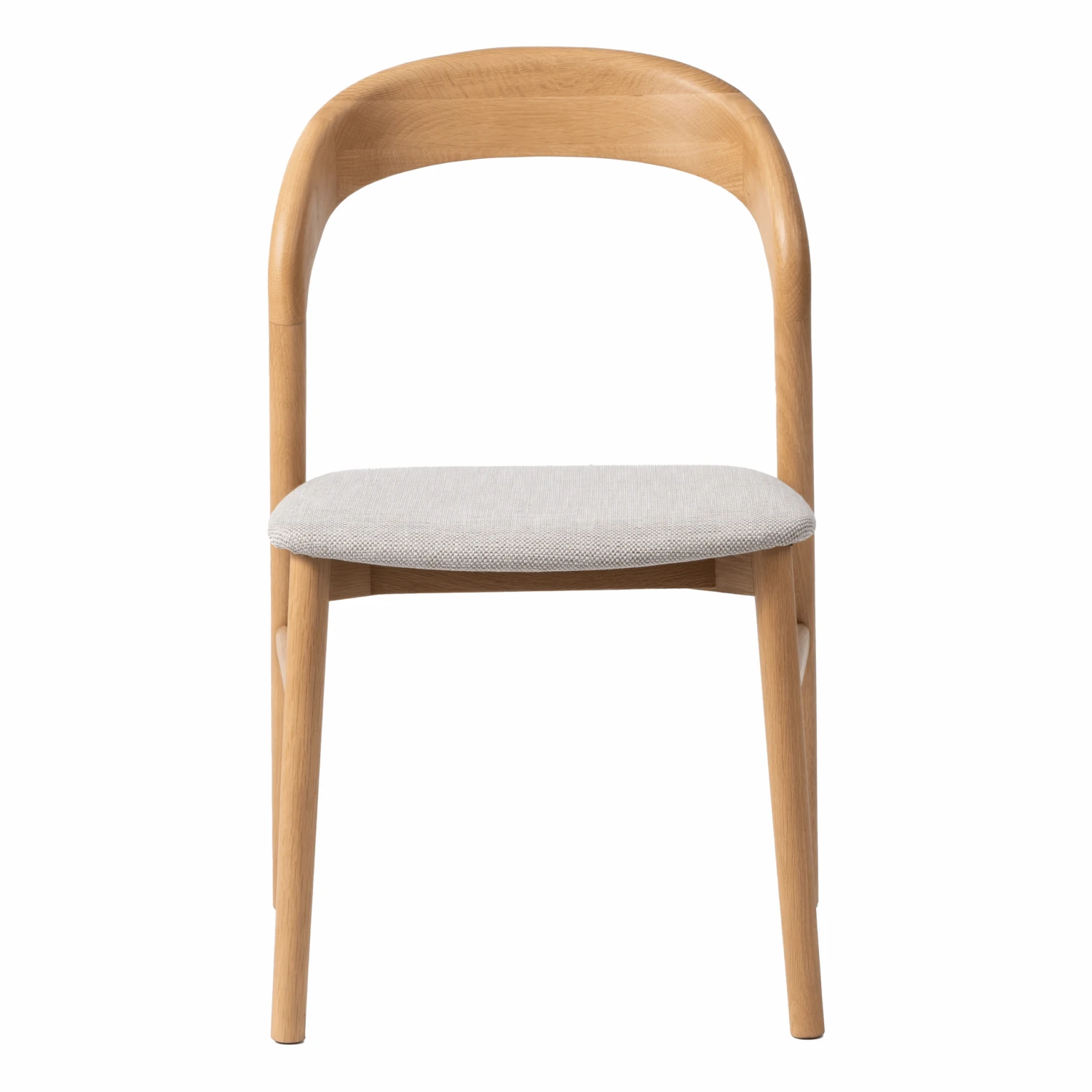The Tempo Dining Chair has solid oak back rest, that wraps around to create a comfortable dining chair. Available in both oak and a fabric upholstered seating.